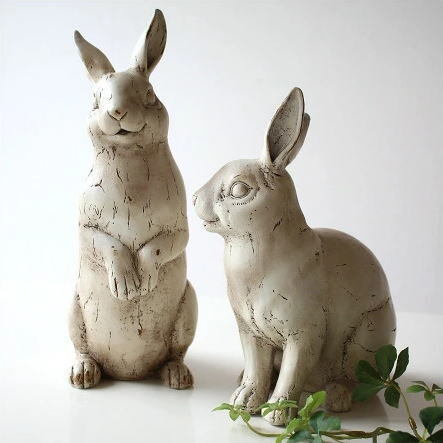 | 花盛りのお庭に ちょこんと顔を出させたり 花と戯れたりする演出で お庭は一層楽しくなりそうです 商品名 : ペアうさぎのオブジェ 商品番号 : cov6045 サイズ(cm) 立ちうさぎ : 幅10×奥行15×高さ27 座りうさぎ : 幅10.5×奥行18×高さ21 重量 : 500?600g 材質 : ポリレジン ※アンティークな木彫り風に仕上げています。わざと汚れやキズをつけてあります。 |