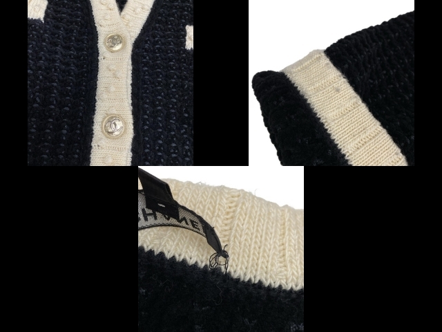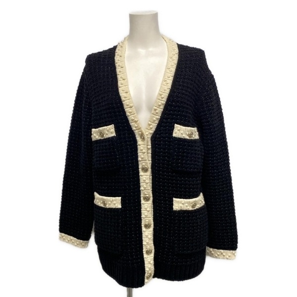 シャネル CHANEL カーディガン サイズ38 M P64693 - ウール 黒×アイボリー レディース 長袖/2020年/ココマークボタン トップス