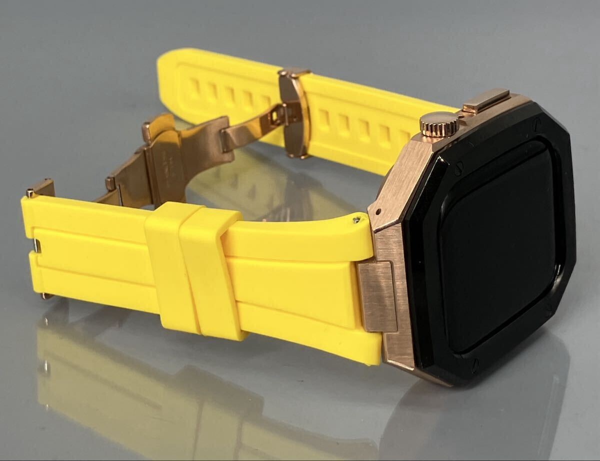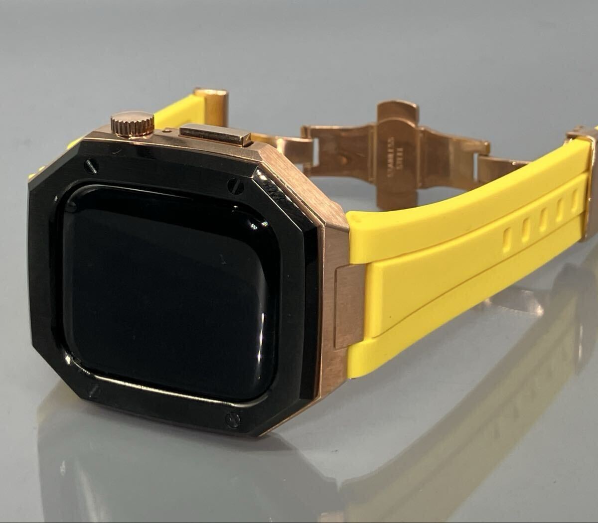 メタリックrby★アップルウォッチバンド ラバーベルト Apple Watch ケース カバー 44mm 45mm 46mm