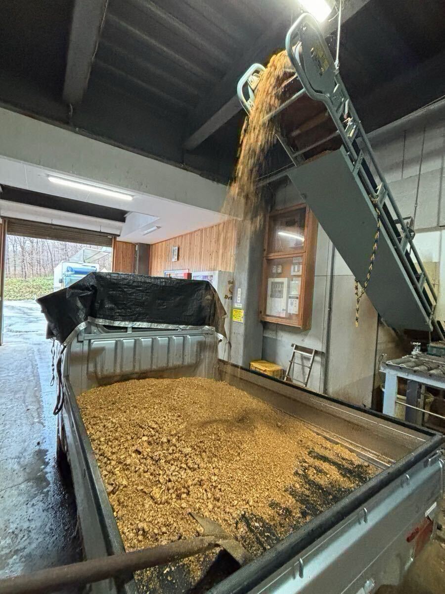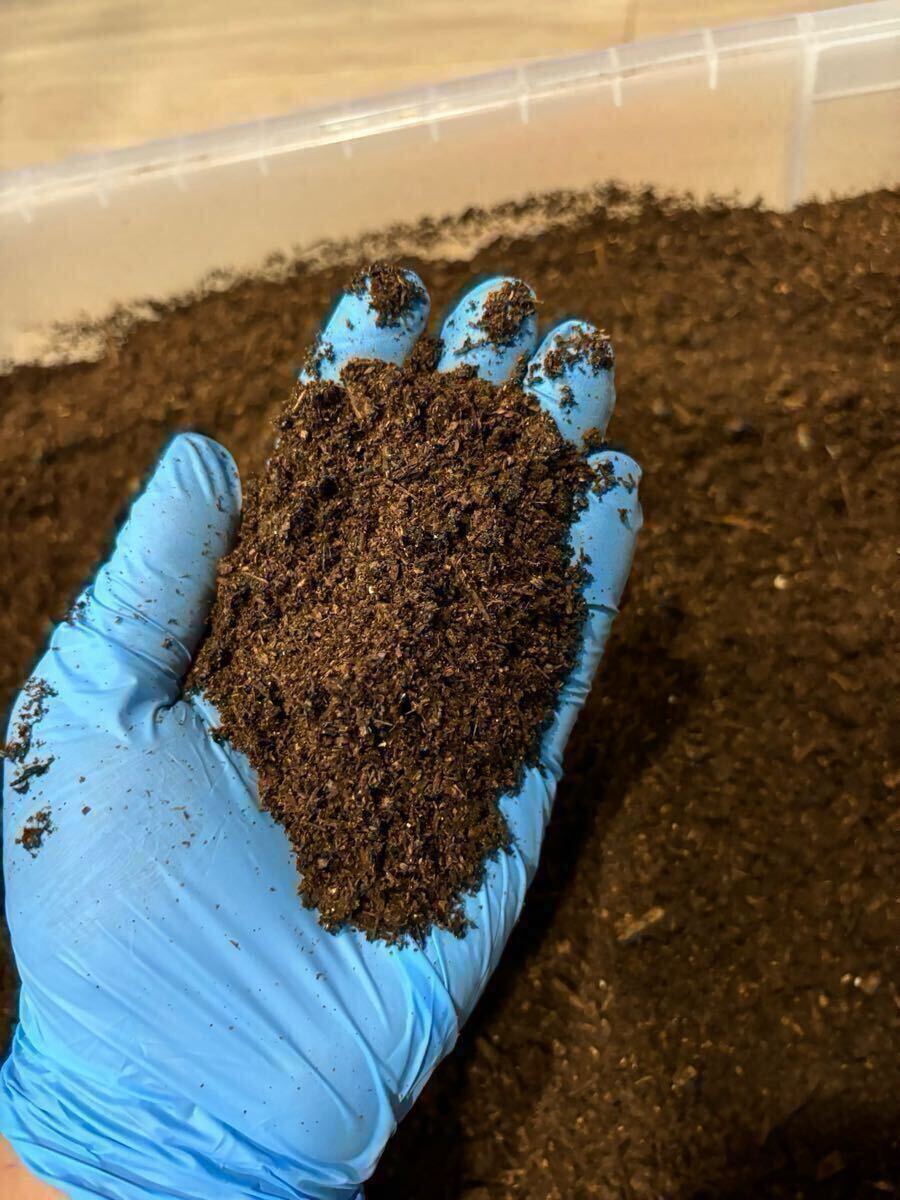 ・キノコ収穫後数分の新鮮な廃菌床を使用しております(画像3)。屋外で保管してある材料や時間が経ったものは使用していないため発酵過程にロットムラも生じにくく、雑虫混入のリスクも低いです。