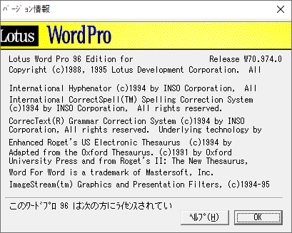 Lotus Word Pro 96 ワープロソフト Windows 動作品 です。