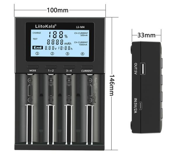 テストモード 18650 充電器 急速電池充電器 単三 単四 リチウム電池 ニッケル水素