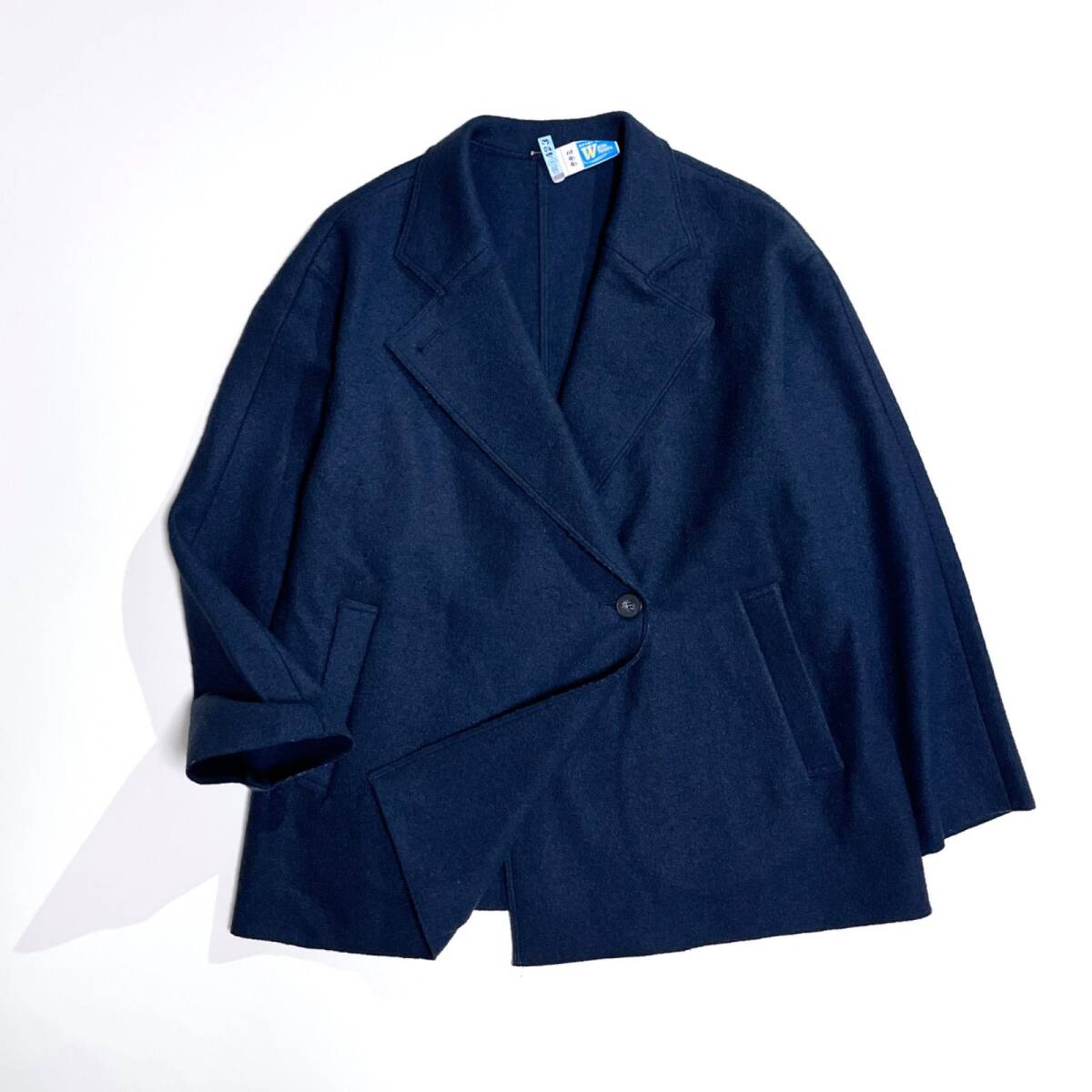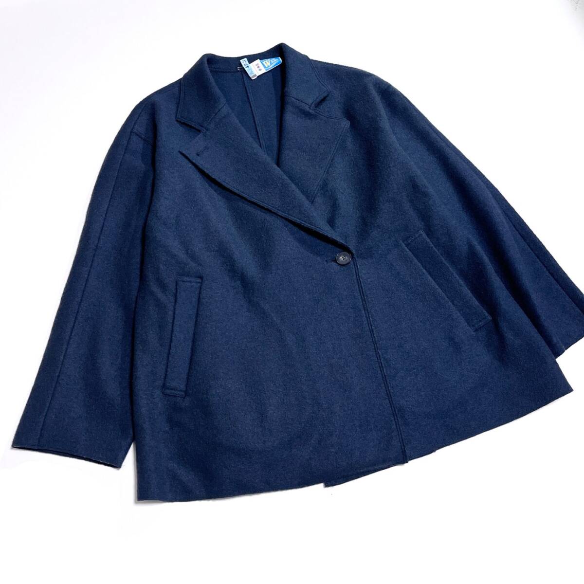ゆったりとしたシルエットの1枚仕立てのライトアウターです。ウエストの釦を止めてピーコート風にも、上襟を軽く立て下襟を閉じてトレンチ風にも、様々なボトムとのコーディネートに着回しが楽しめます。釦をあけて軽く羽織るだけでもテーラー衿のきちんと感がでるので、カジュアルにも通勤にもお召し頂けるアイテムです。