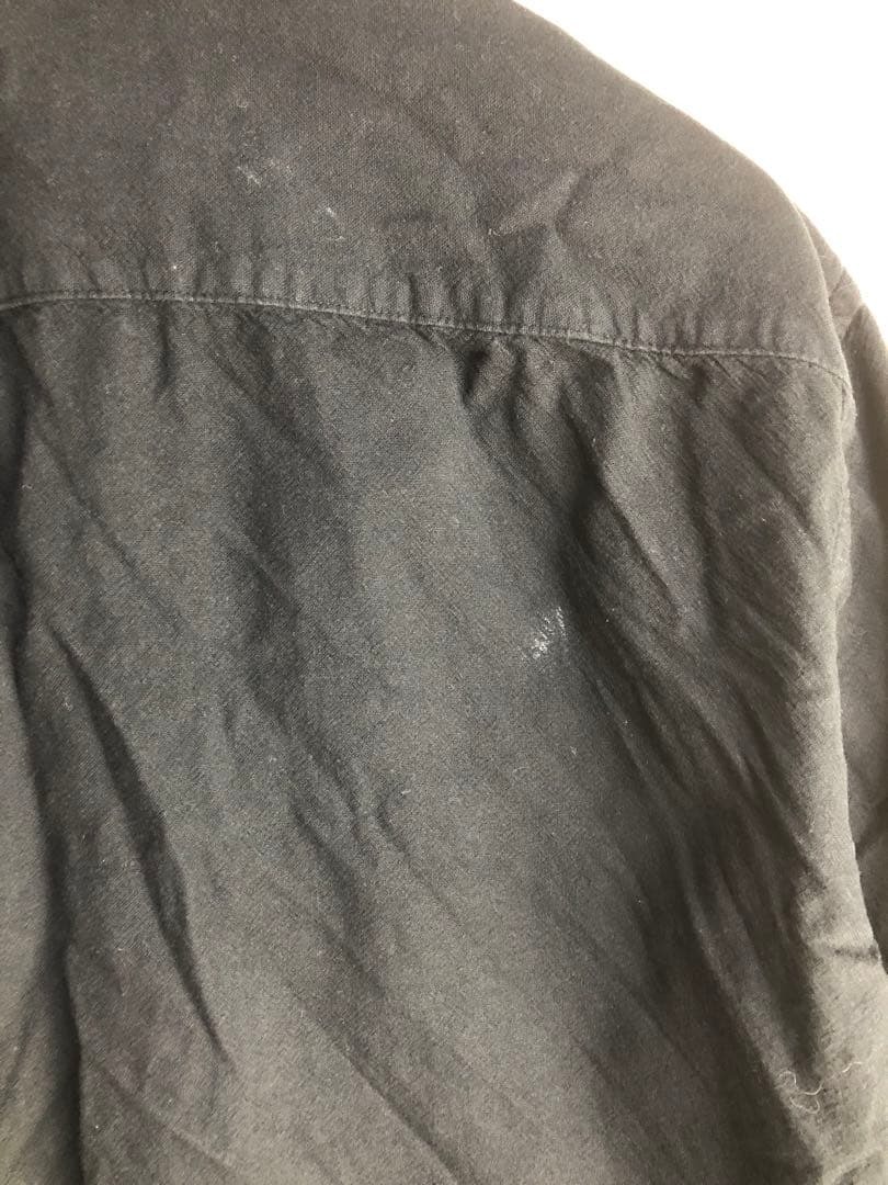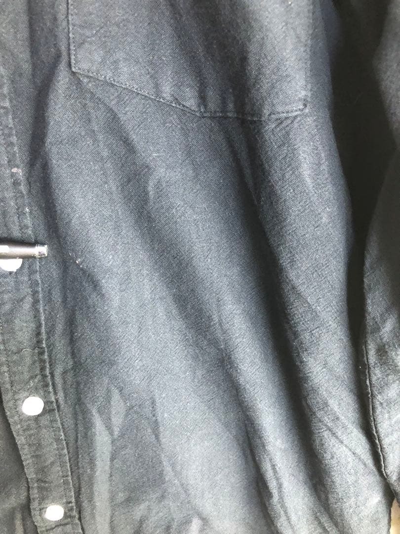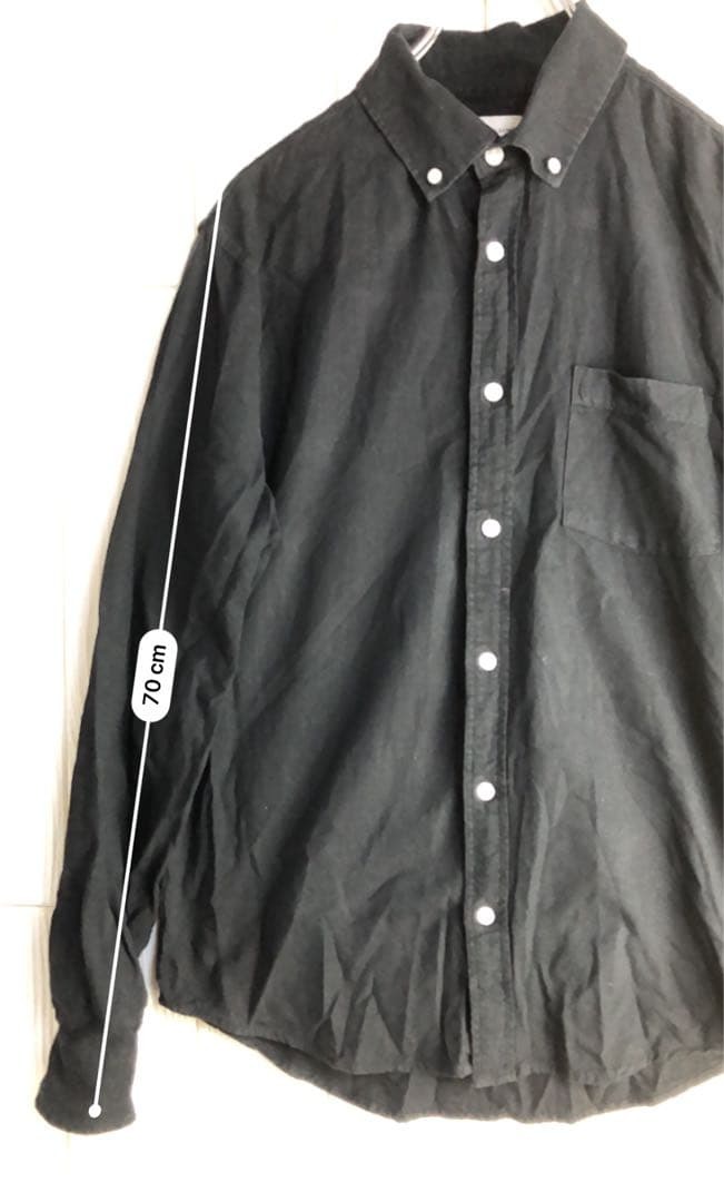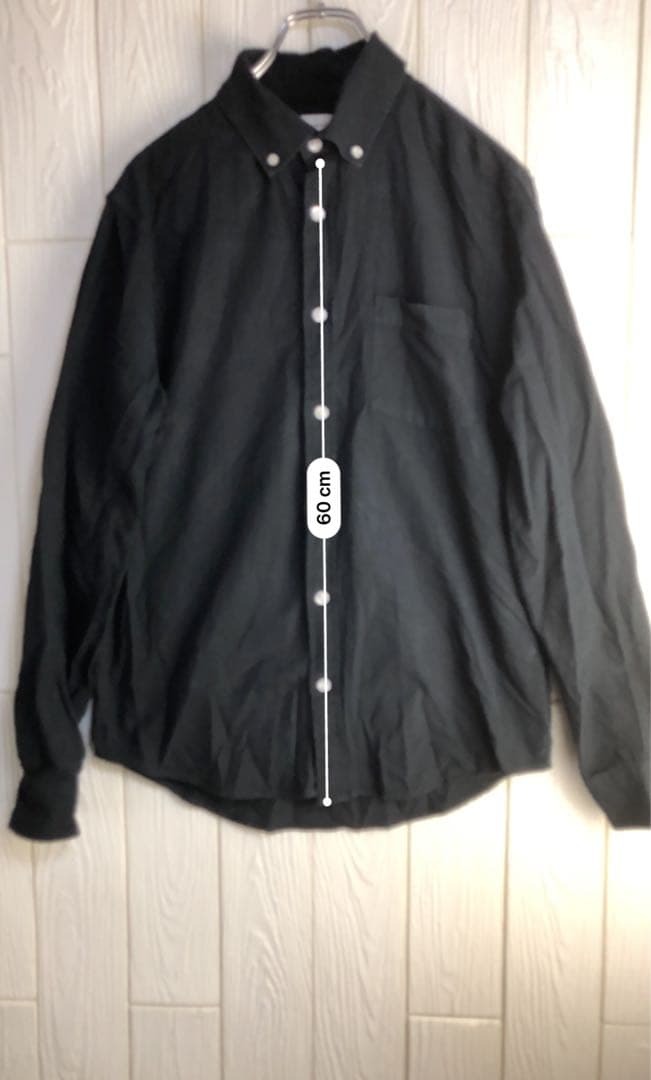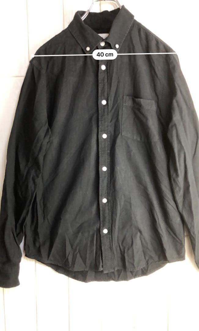 シンプルなブラックの長袖シャツ、胸ポケット付きで着丈60cm、肩幅40cm。