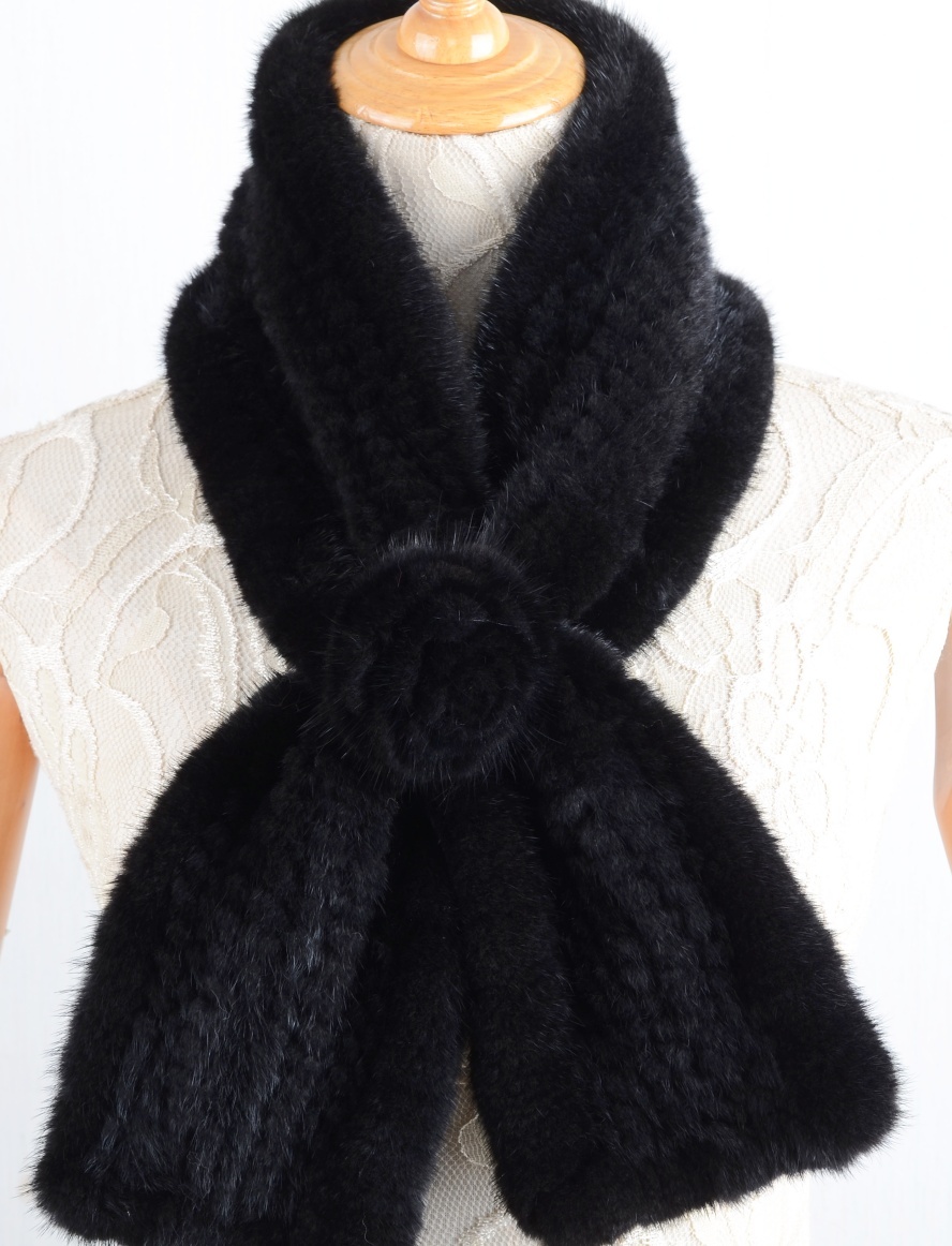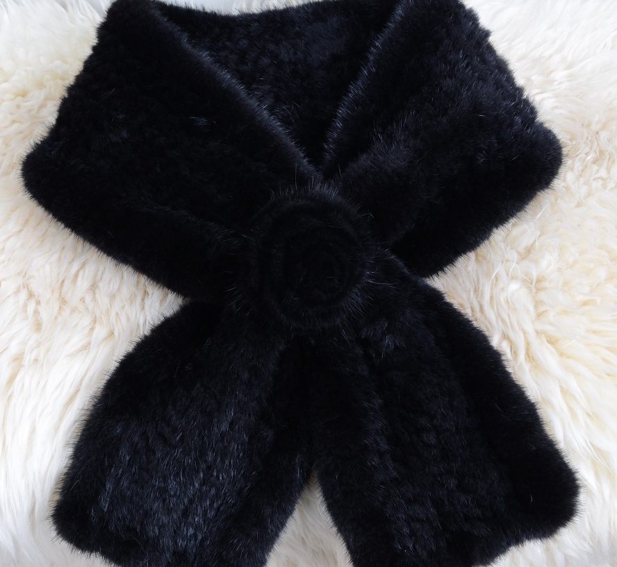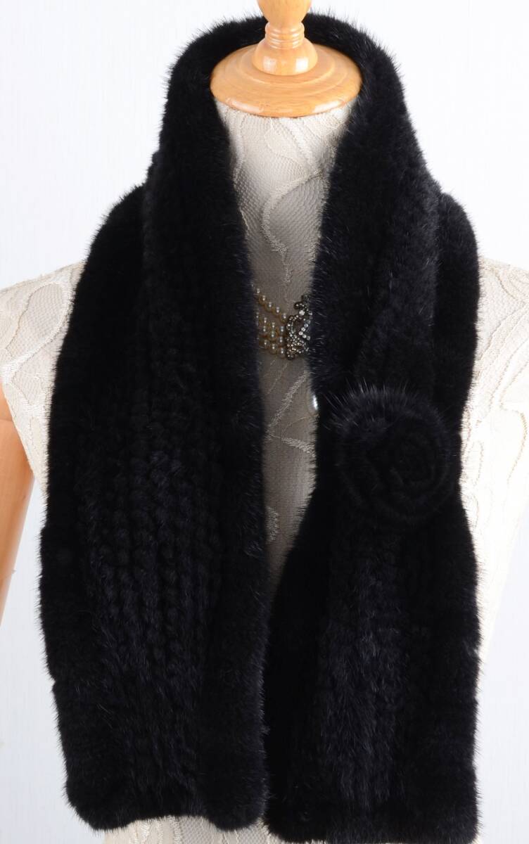 | 新品お花デザイン★上質なミンク編み込みマフラー黒毛皮リアルファーギフトプレゼント | |||