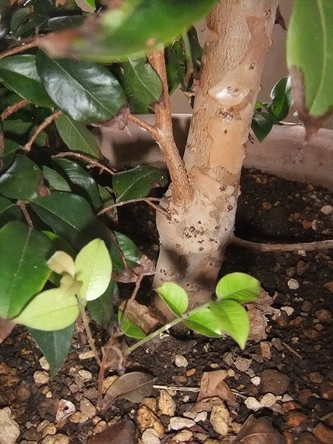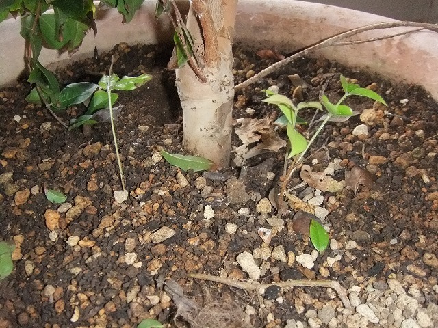 実が付いて自然落下後、2本芽を出しています。(写真参考)