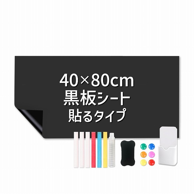 黒板シート 40×80cm 粘着式 ブラック マグネット 磁力 カット 裁断可能 チョーク 消しゴム付き ホワイトボードシート