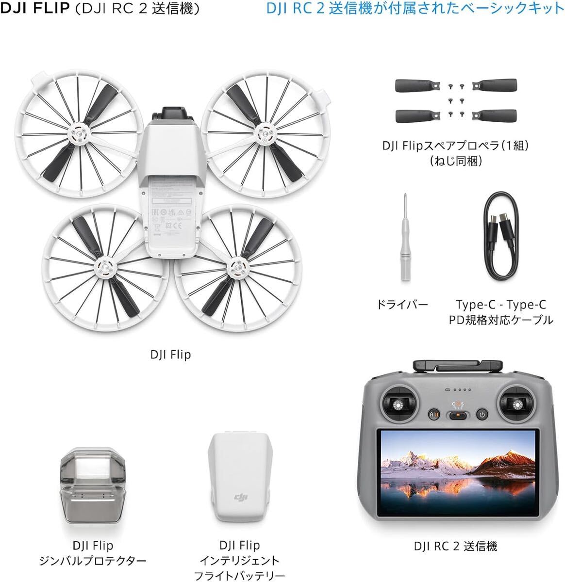DJI Flip、高輝度スクリーン付きRC 2送信機、バッテリー(1個)、その他が含まれています。アップグレードされた飛行体験に最適です。