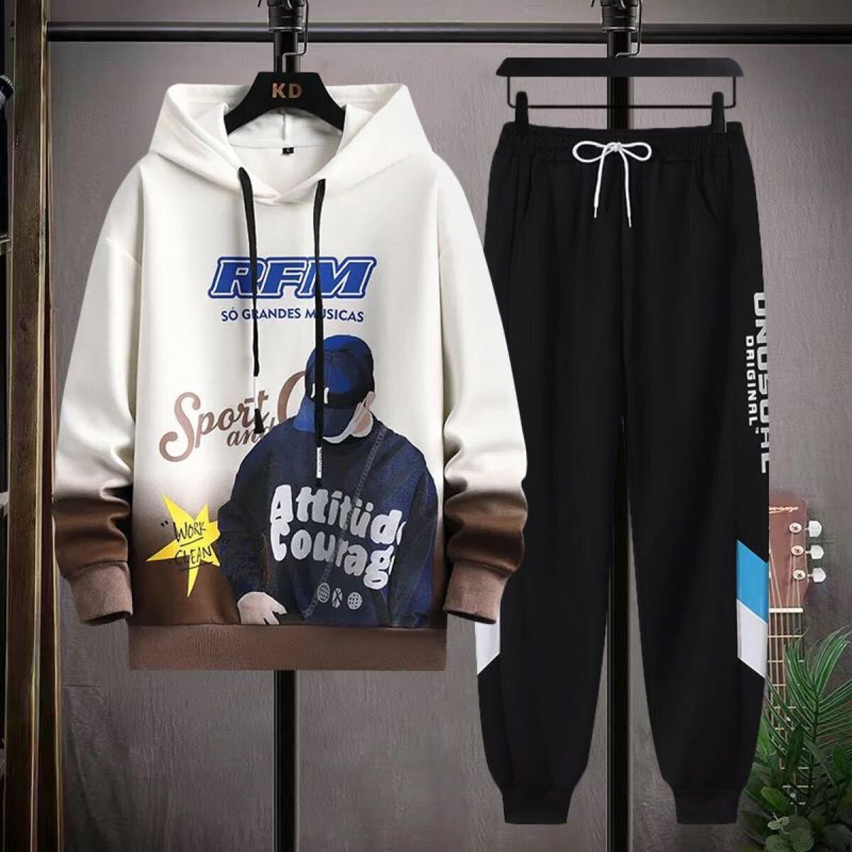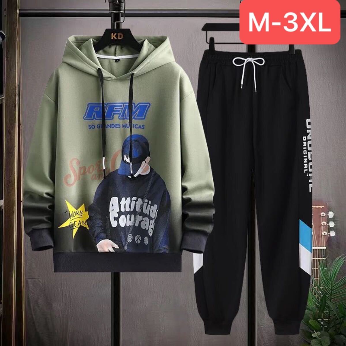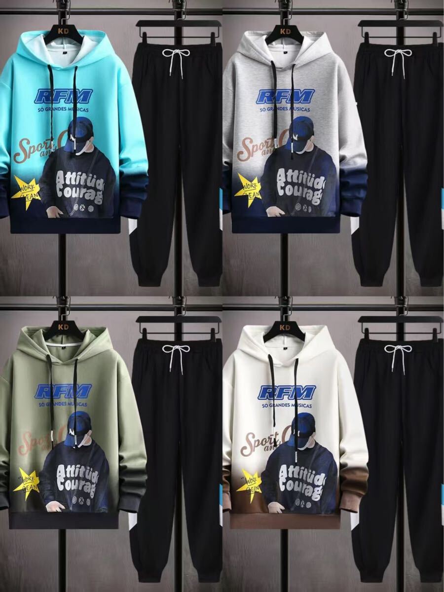 メンズ セットアップ フード付きトレーナー+ズボン 2点セット 上下セット スポーツウエア プリント 英文字 大きいサイズ 長袖 春秋 ゆったり カジュアルJSCS047 (4色M-3XL)