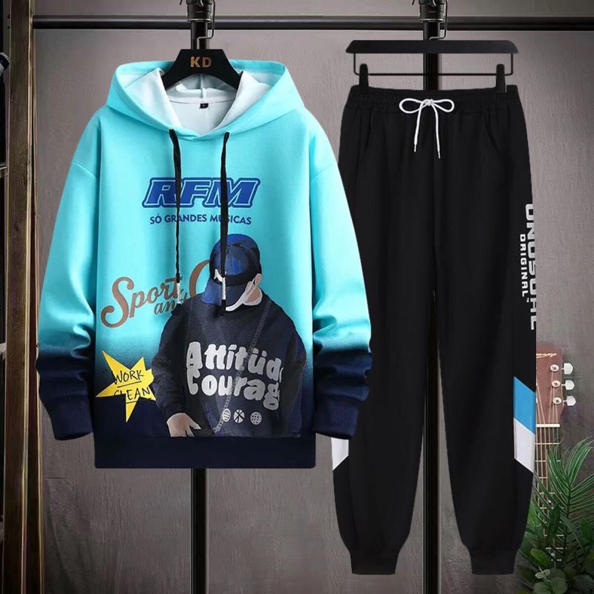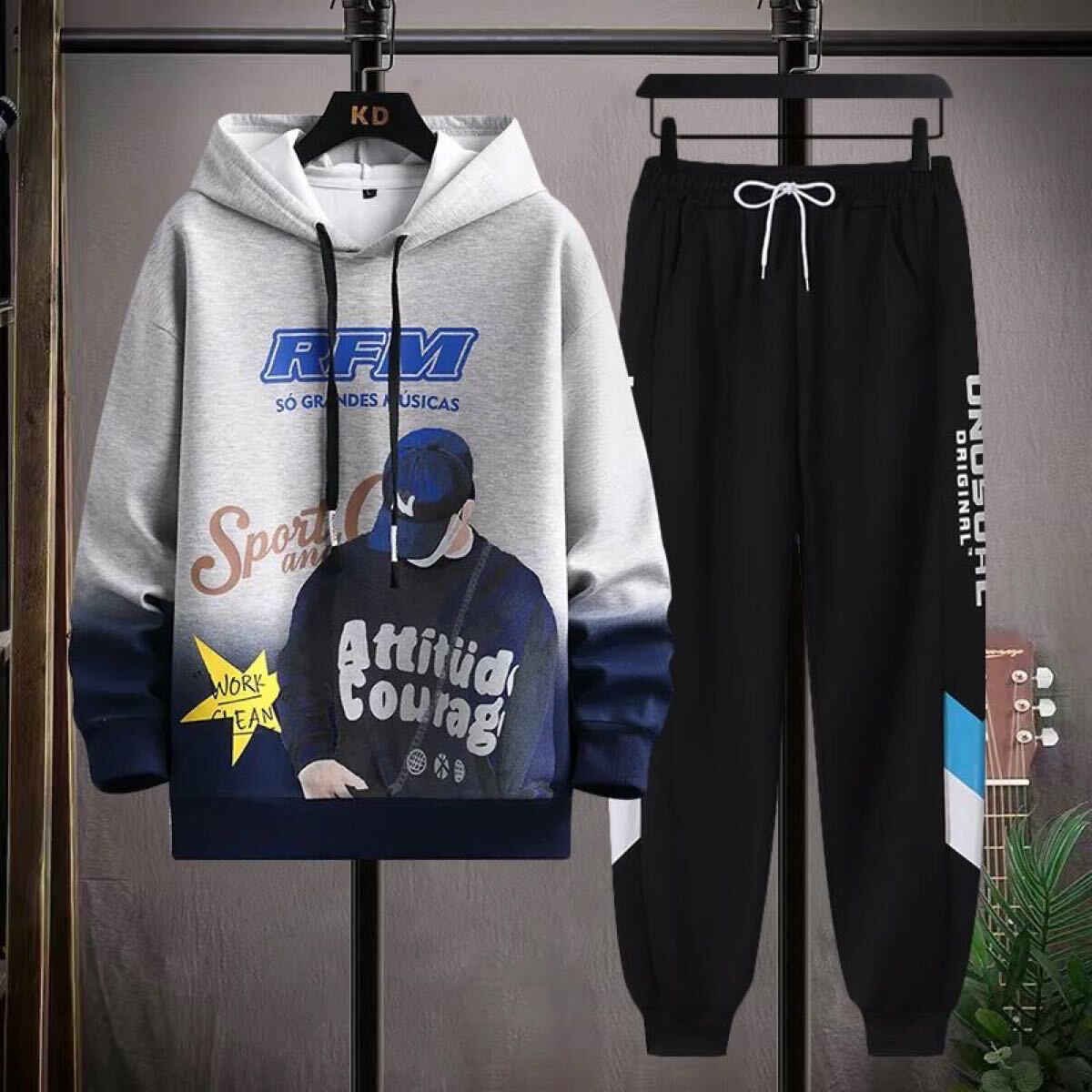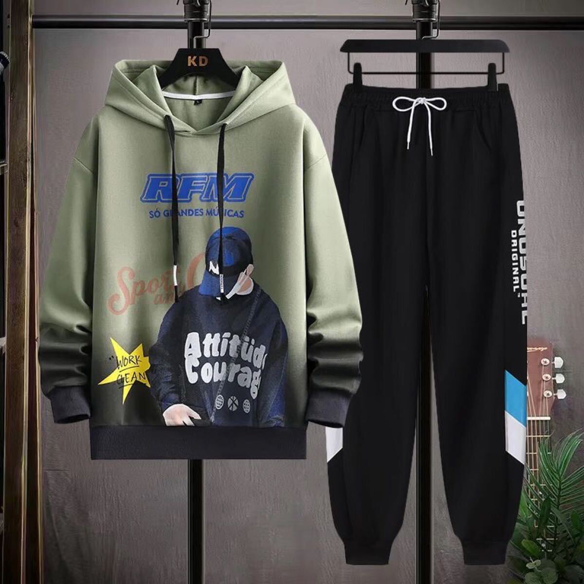 メンズ セットアップ フード付きトレーナー+ズボン 2点セット 上下セット スポーツウエア プリント 英文字 大きいサイズ 長袖 春秋 ゆったり カジュアルJSCS047 (4色M-3XL)