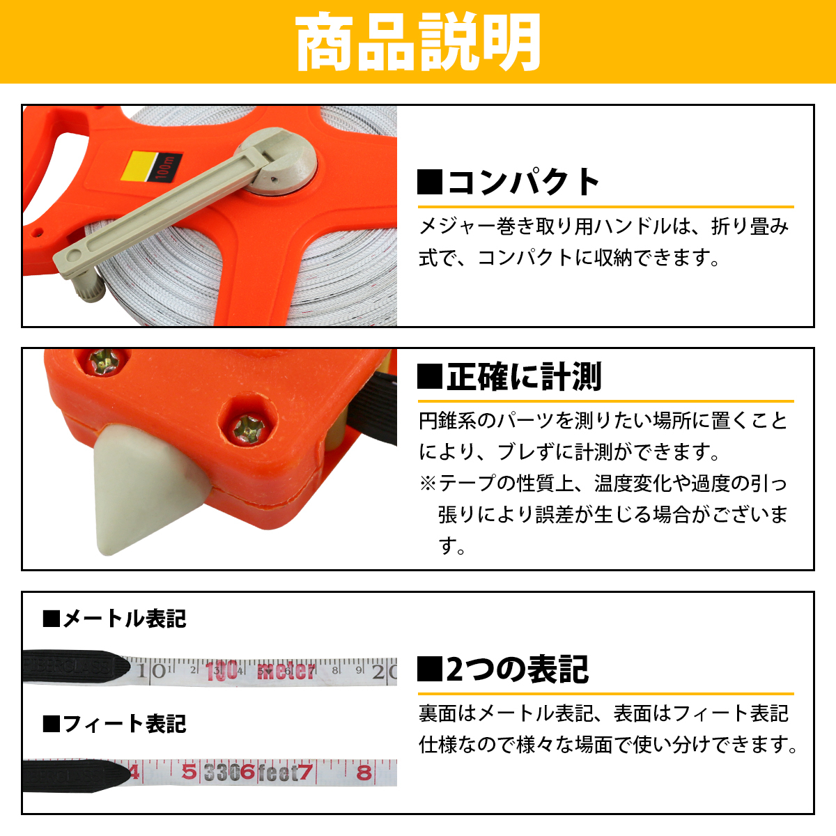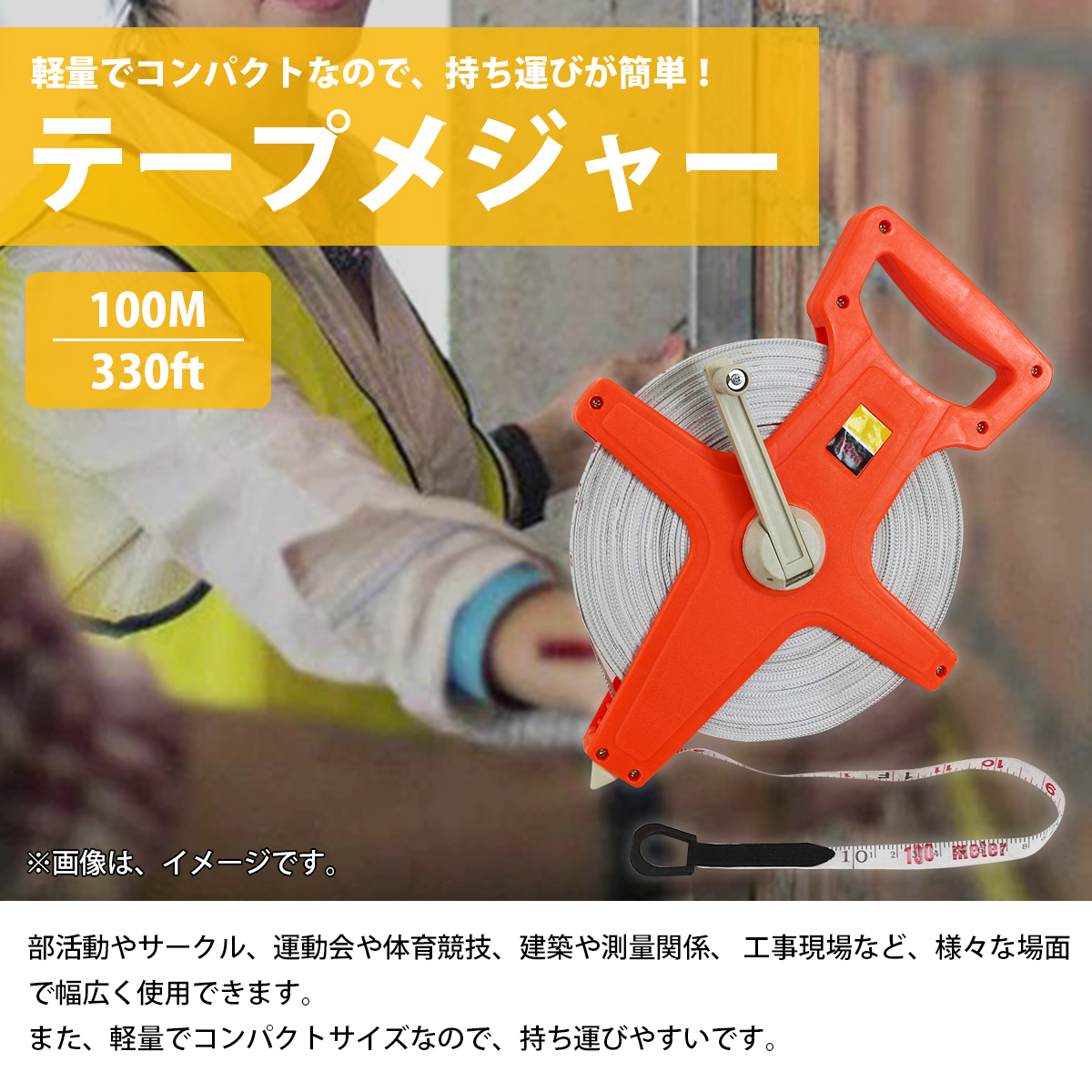 1個 100m 巻尺 テープメジャー 両面目盛り付 コンパクト 測量 工事 建築 土木 スポーツ 運動会