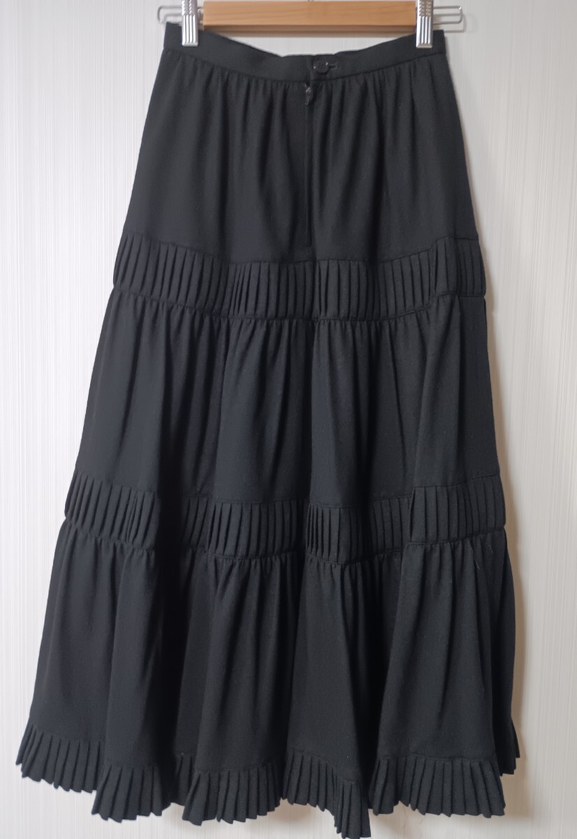 | こちらは何度目か着用したusedです♪ 状態はあまり目立たないレベルの使用感はありますが目立つようなダメージ等は見当たらず御覧の通りで普通にキレイだと感じます♪ サイズはM、平置きでウエストが約31、丈82センチ位です♪(素人採寸ですので目安でお願い致します..♪)♪ ウール100%の日本製なのもありしっかりとした作りでフレアのラインも美しい商品です♪♪ 念のためusedを御理解いただけNCNRを御了承いただける方のみで、よろしくお願いします♪ 他にも色々出品ますので是非ご覧下さい(^_-)-☆ 同梱は大歓迎です♪ 必ず自己紹介をご覧くださいませ!!