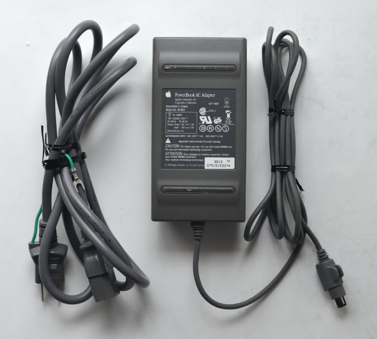PowerBook AC Adapter M1893と 当時 同梱されていた "Appleオリジナル" 電源ケーブル の出品です。