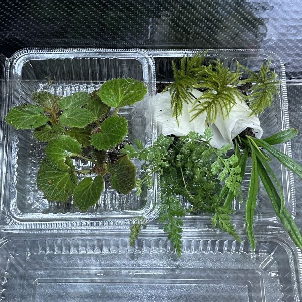 ゆったり!まったり!と綺麗なこけで癒されて見ませんか? 色鮮やかな天然の苔等をパック外寸(18cm×12cm)に詰めしました。 ★苔:ミニシダ ユキノシタ コウヤノマンネングサ ノキシノブ 各3株 苔盆栽・苔リウム、テラリウムの装飾にオススメ! 出来るだけ形の良いコロニーを厳選しております。 色も緑鮮やかで、ボリューム満点です。 取り出す際はコロニーを崩さないよう下からすくうようにして慎重に取り扱いお気に入りのケースに入れてください。 環境は日陰〜陰 湿気多 です。 こけ表面が乾いたら霧吹きなどで水を与えてください。 苔は湿らせた状態で発送させていただきますが季節的に乾燥して届く場合もあります。 自然苔のため清掃後も小石や枝葉などが混じっている可能性がありますが、ご了承ください。 第四種郵便発送ですので内部が見える梱包になります。 また追跡や保障はありませんので不安ありましたら別途追加料金にて宅配便などへの変更は可能です。 到着時は半渇き~乾燥状態で葉が縮こまって元気が無いように見えるかもしれませんが霧吹き等で水を与えてください。