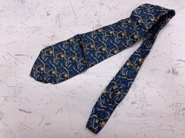 ピエールバルマン PIERRE BALMAIN チェーン柄 ネクタイ メンズ シルク100% ITALY製 フォーマル 紺