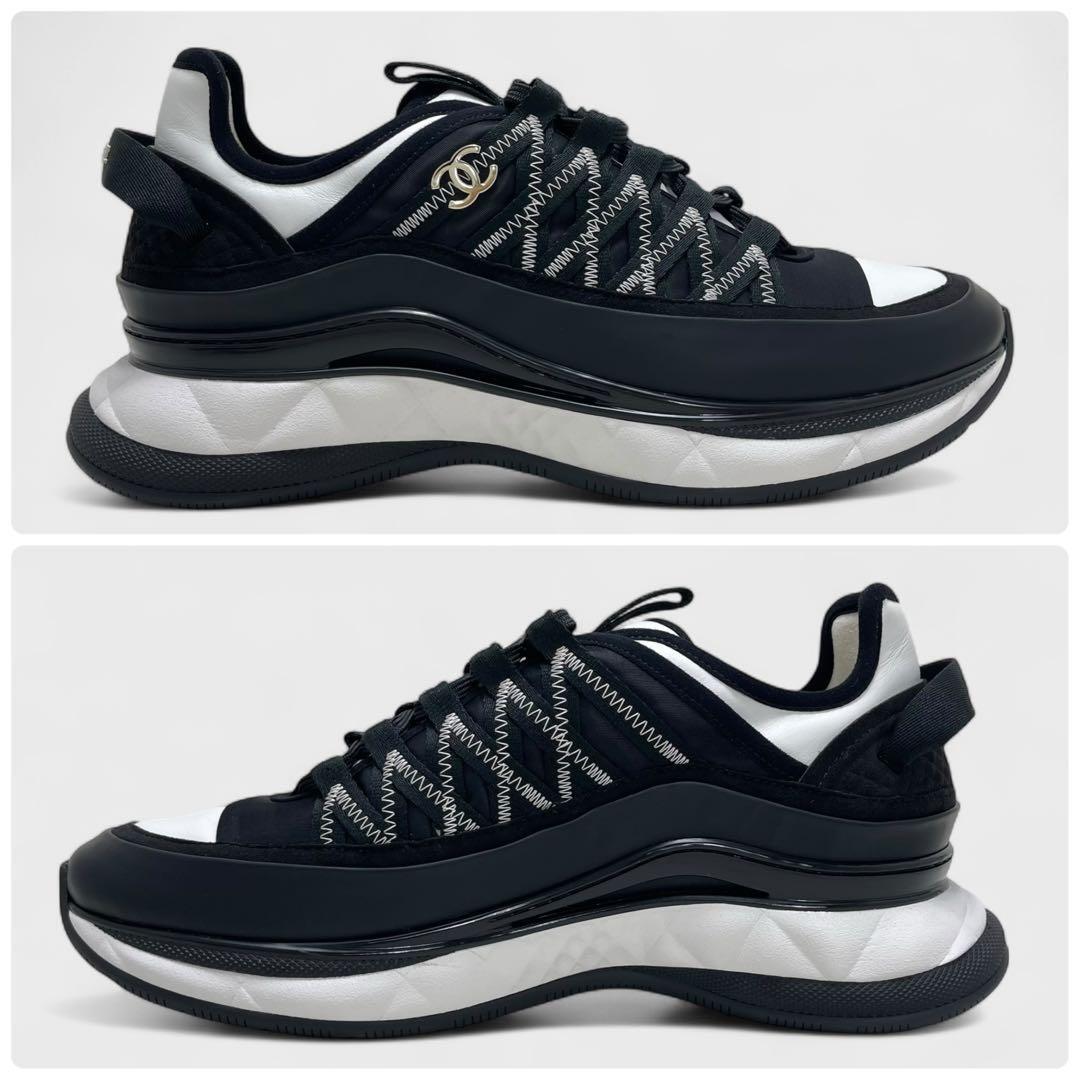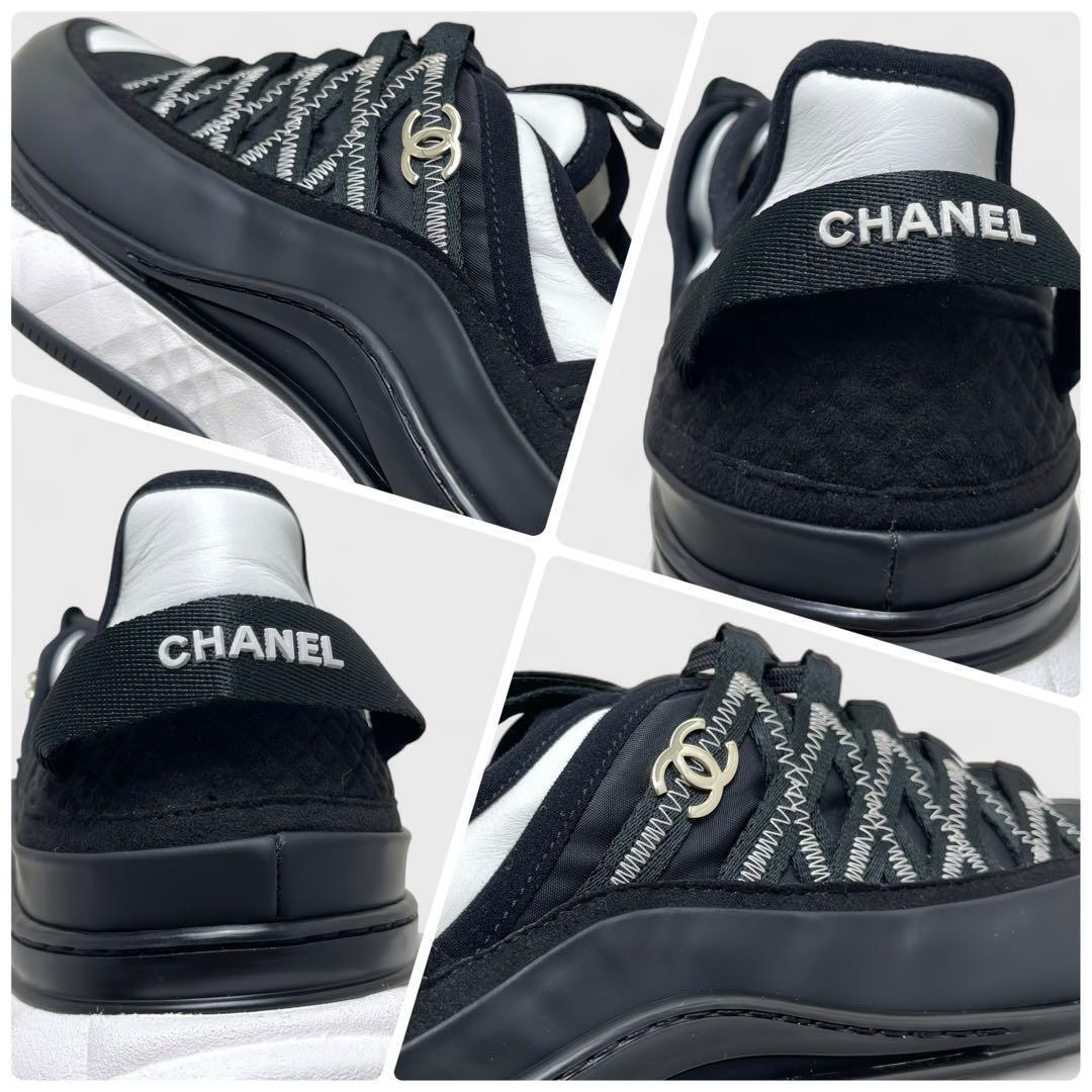 【レア品/未使用級】CHANEL シャネル スニーカー サイズ39 1/2 26㎝ 2024B 黒×白 ココマーク シャンパンゴールド カーフスキン メンズ 靴 | |||