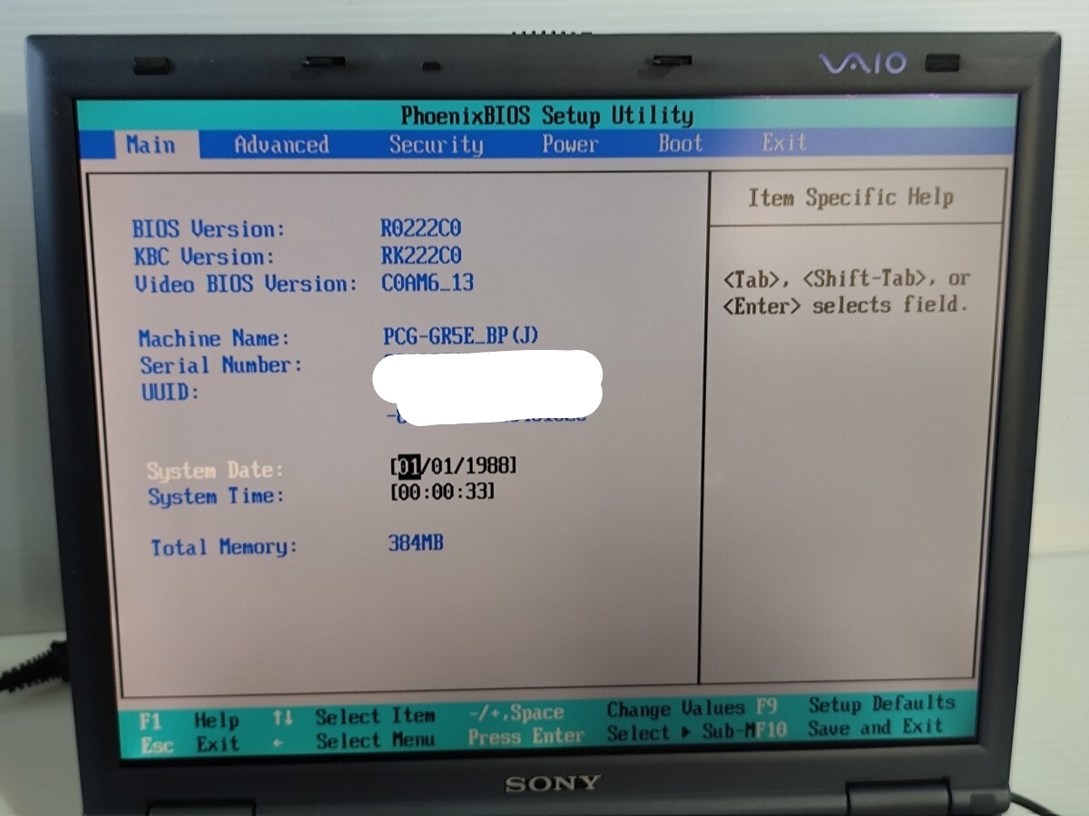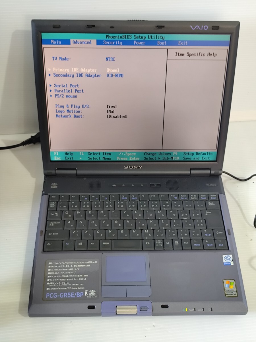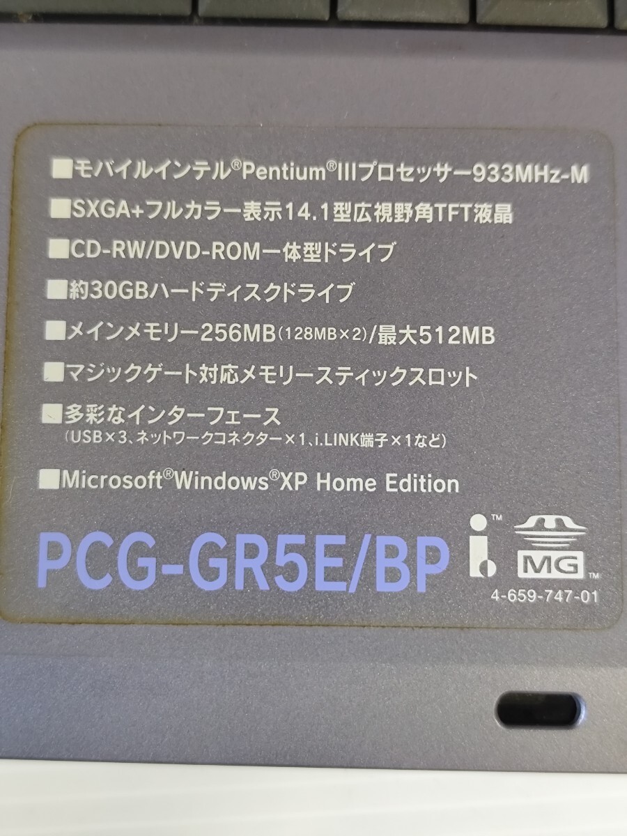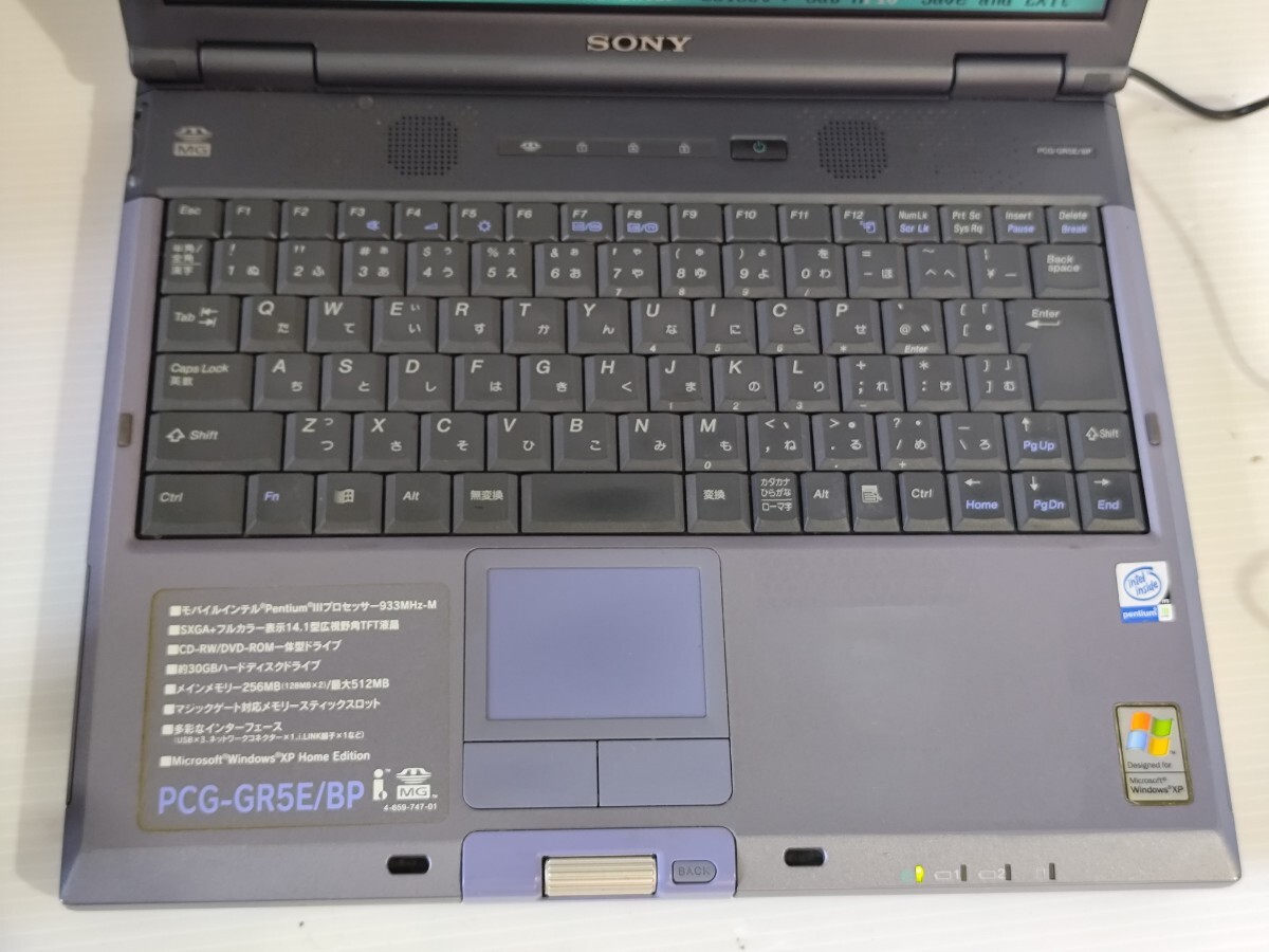 y1282 SONY VAIO PCG-GR5E/BP バイオノートGR 2001年頃 ジャンク