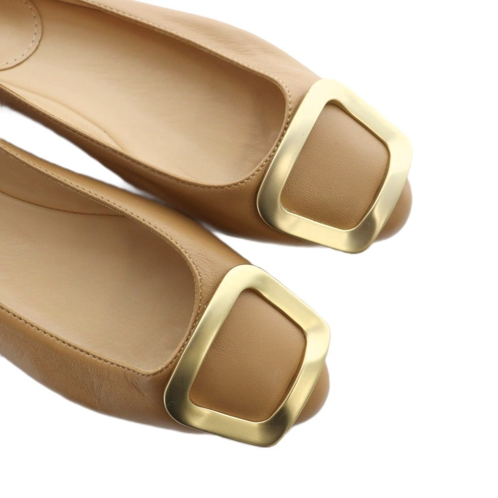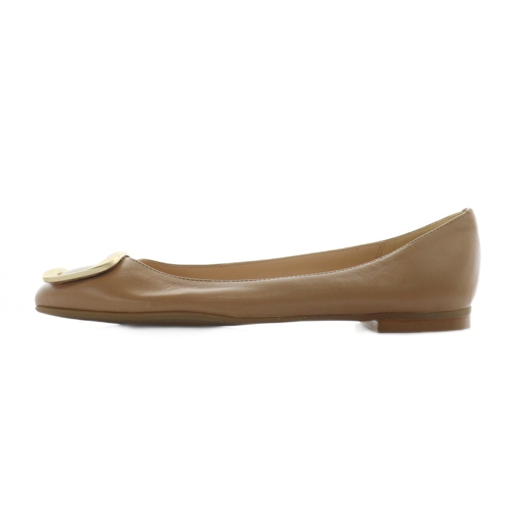 ファビオルスコーニ FABIO RUSCONI フラットシューズ パンプス スクエアトゥ ロゴ レザー 37 24cm 茶 ブラウン ■GY19 /MQ レディース