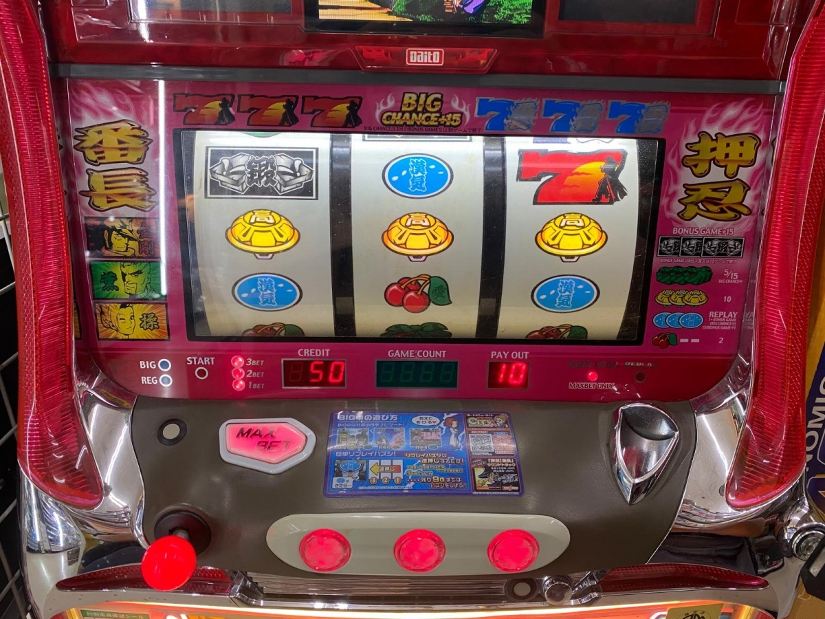 【現状渡し】店舗引取り限定 4号機 押忍!番長 実機 家庭用電源対応 コイン不要機付き 設定キー・ドアキー付き スピーカー不良あり