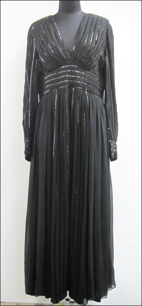 Bana8・衣類◆三越 長袖 ロングドレス スパンコール 黒 パーティー フォーマル 演奏会