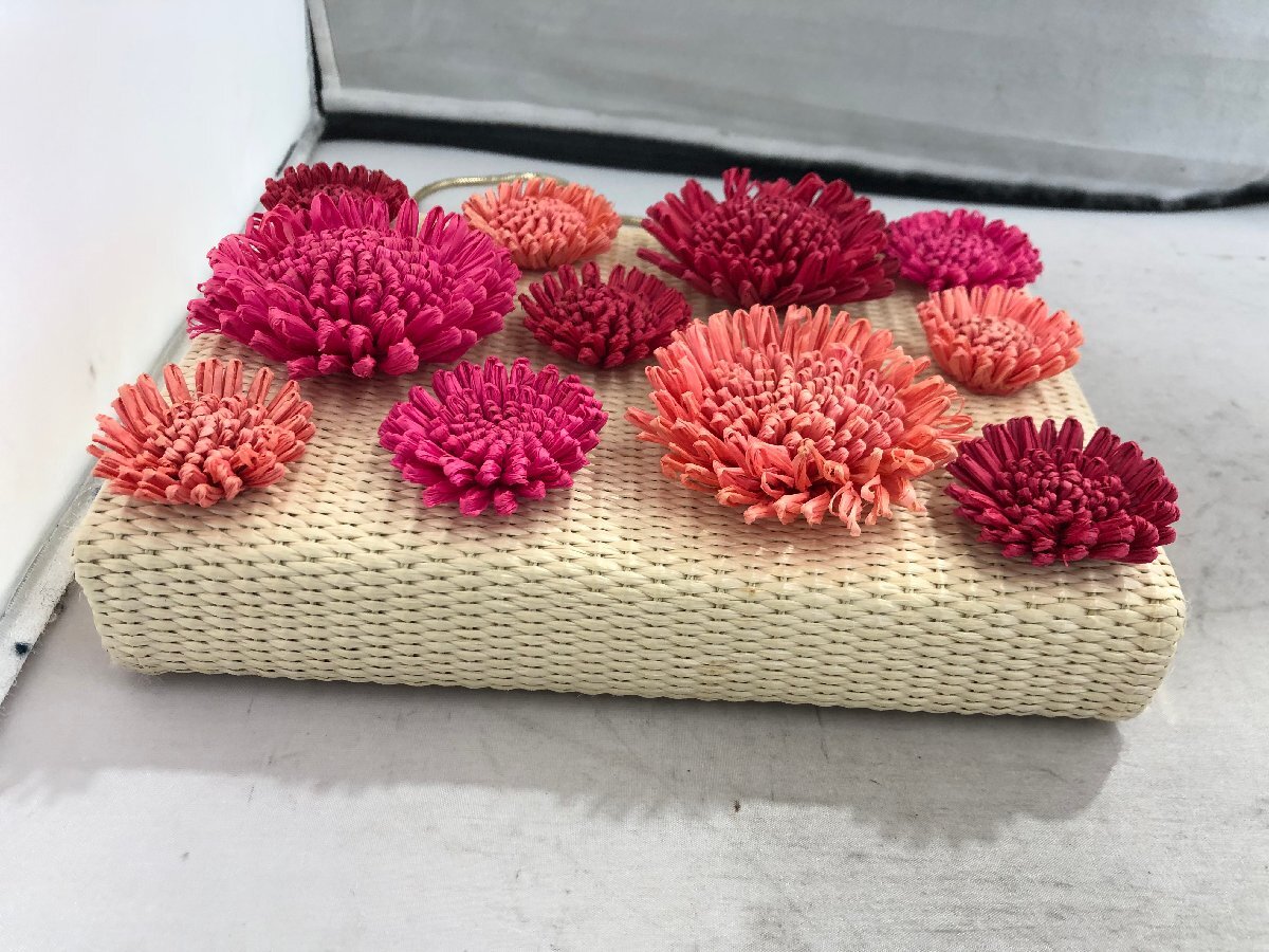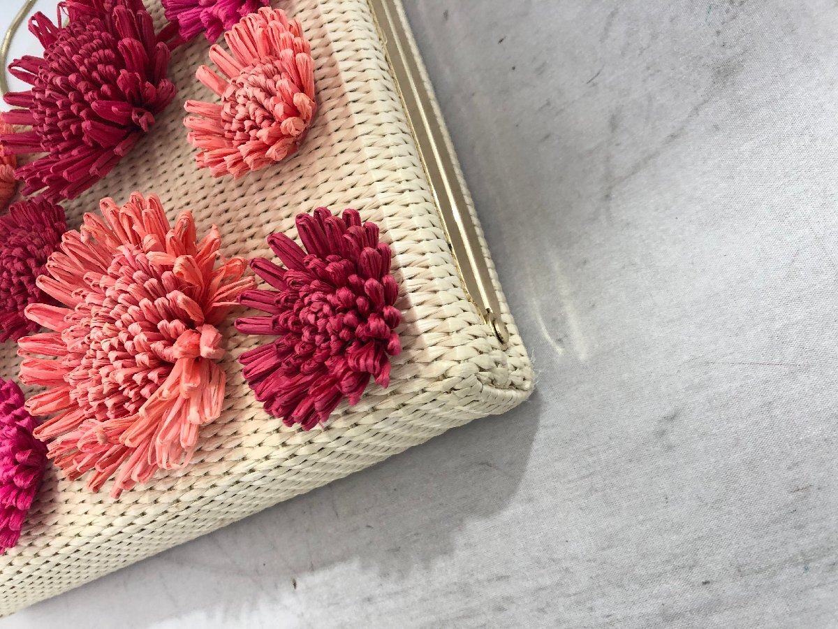 ・カラー:ラタン素材に 赤・ピンクの花柄モチーフ