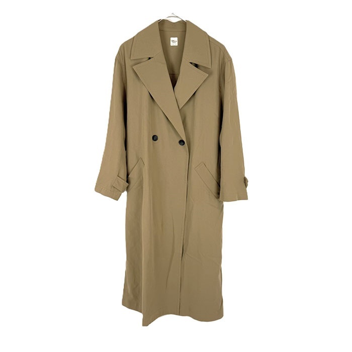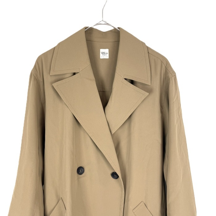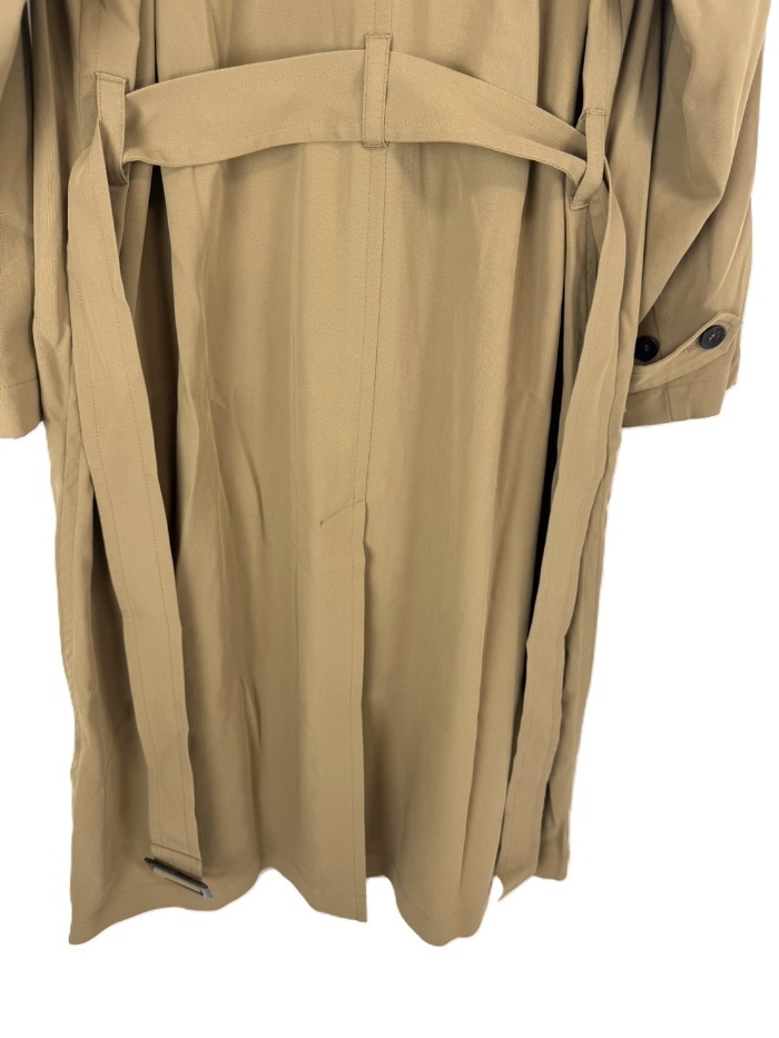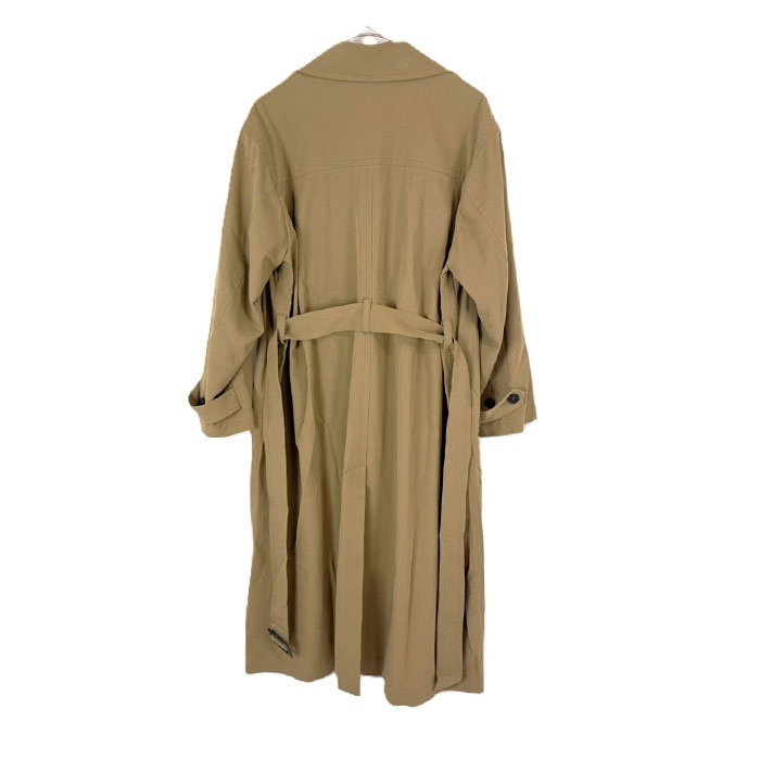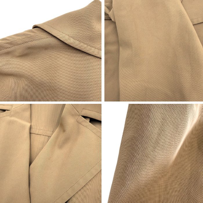 | 【コメント】 ゆったりシルエットでサラっと羽織れるおしゃれなスプリングコートです。右袖、左肩、左肩後ろ、左裾、ボタン付近など小さなシミ汚れが数ヵ所あります。目立つほどではなく、まだまだご着用いただけるお品物です。 |