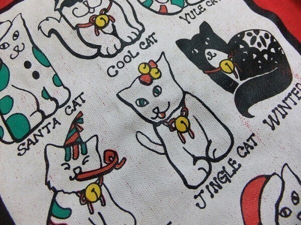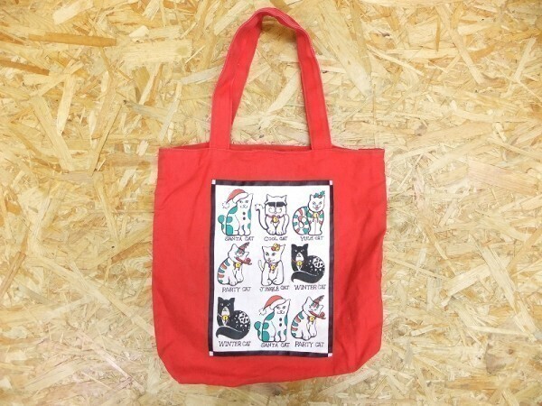 猫好き必見 クリスマスキャット勢揃い 可愛いイラストプリント トートバッグ 赤