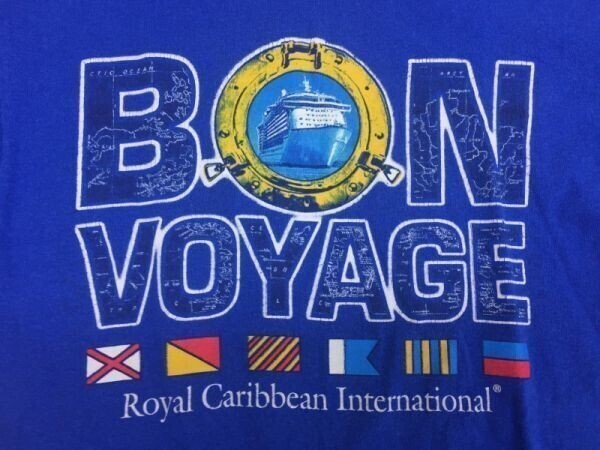 BON VOYAGE ロイヤルカリビアン クルーズ船 旅行 スーベニア お土産 DELTA製 レトロ オールド半袖Tシャツ メンズ S 青です。