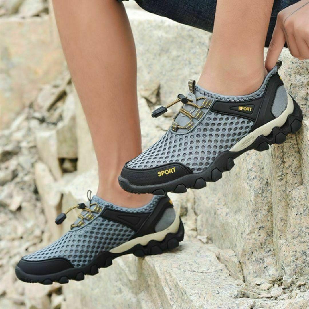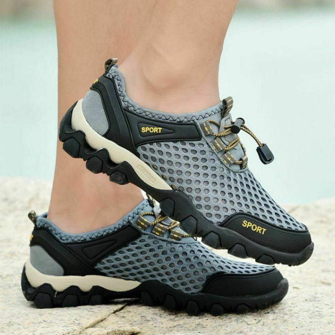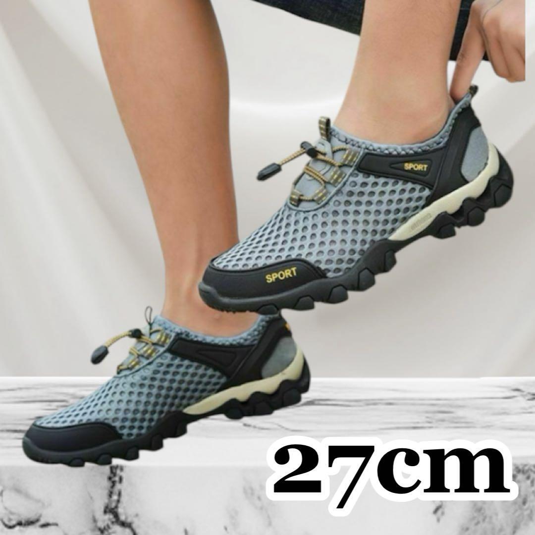 27cm スニーカー 水陸両用 トレッキングシューズ 釣り 運動靴 登山 グレー メンズシューズ 軽い フィッシングシューズ 軽量 ひも靴