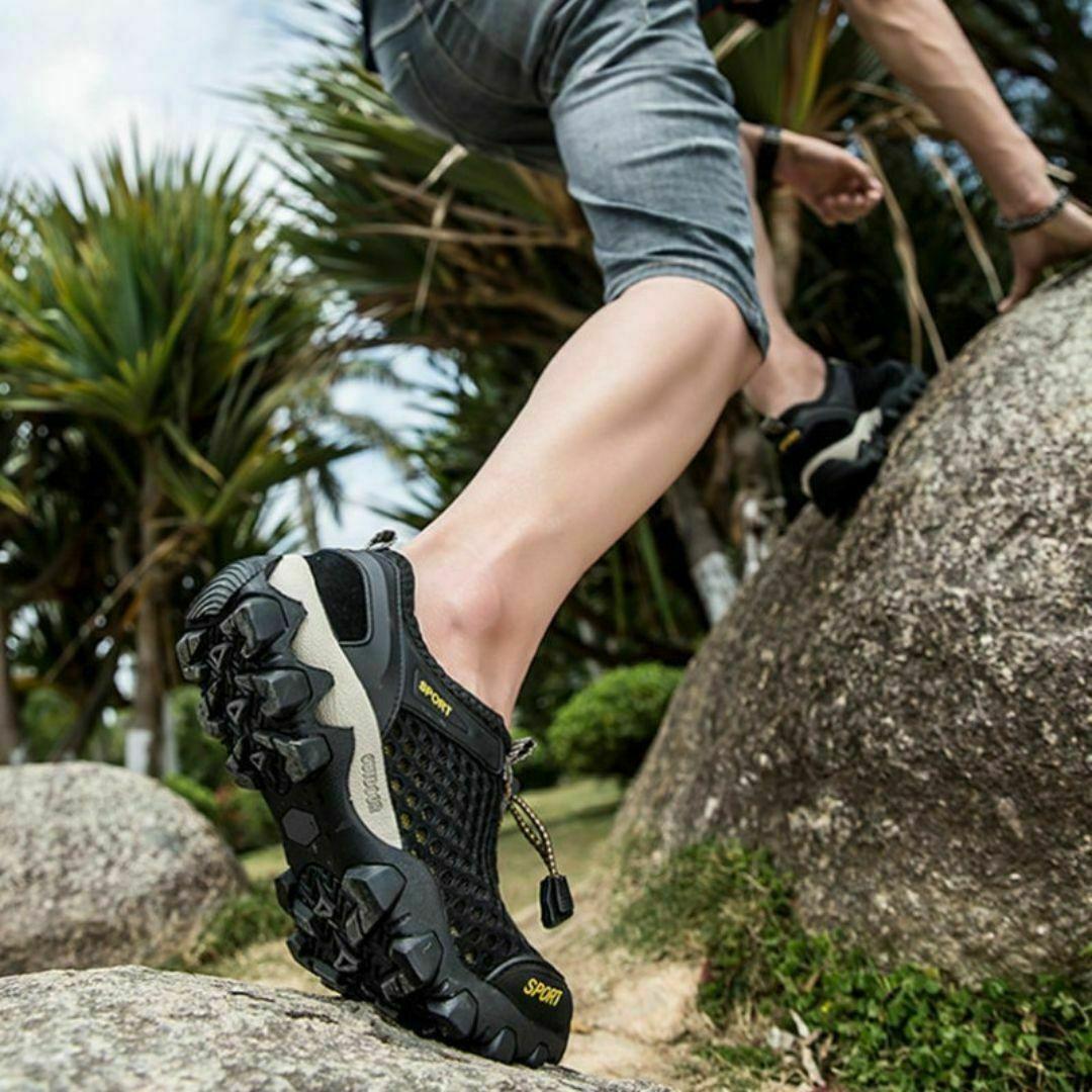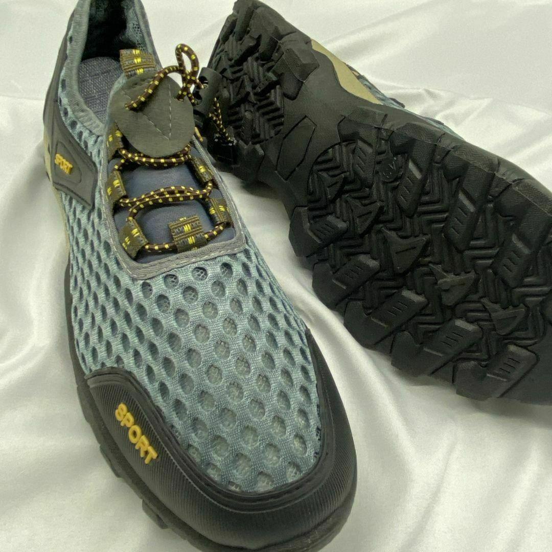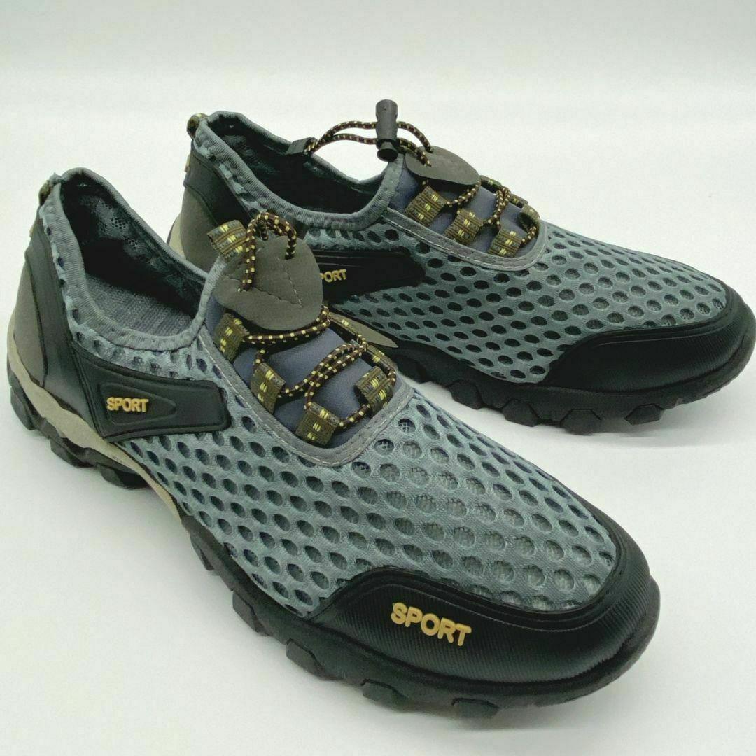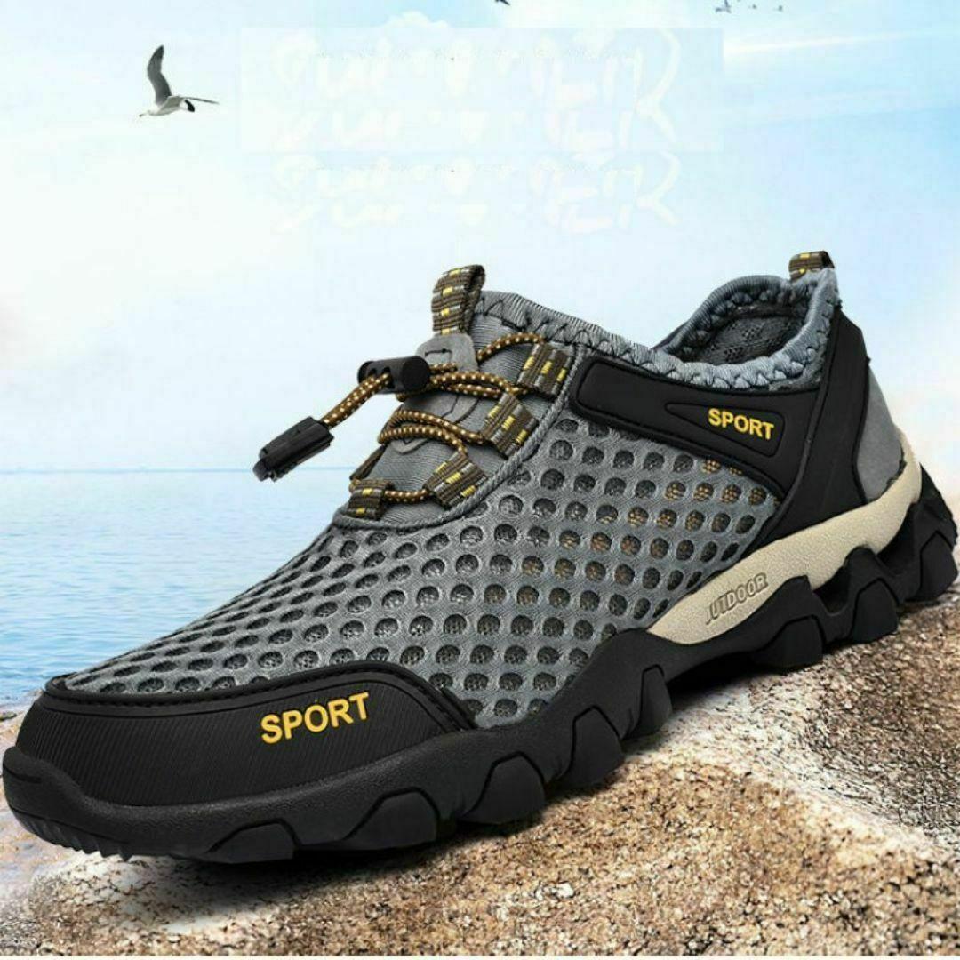 27cm スニーカー 水陸両用 トレッキングシューズ 釣り 運動靴 登山 グレー メンズシューズ 軽い フィッシングシューズ 軽量 ひも靴