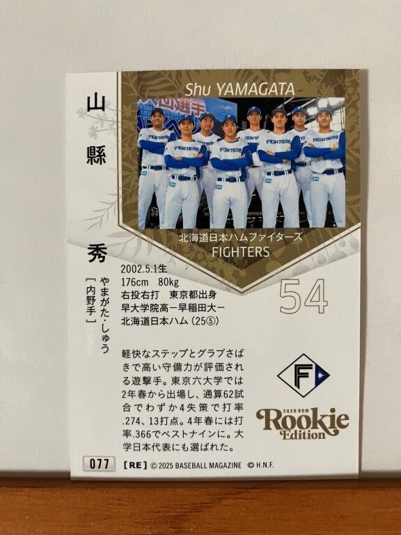 【2025 BBM ルーキーエディション】077山縣秀(北海道日本ハムファイターズ)レギュラーカード