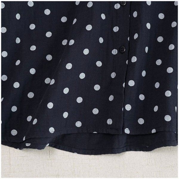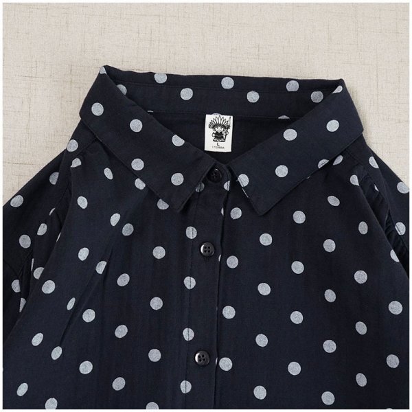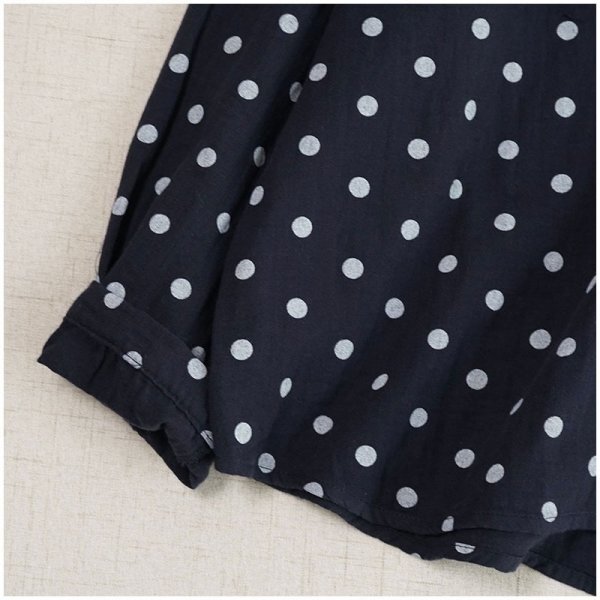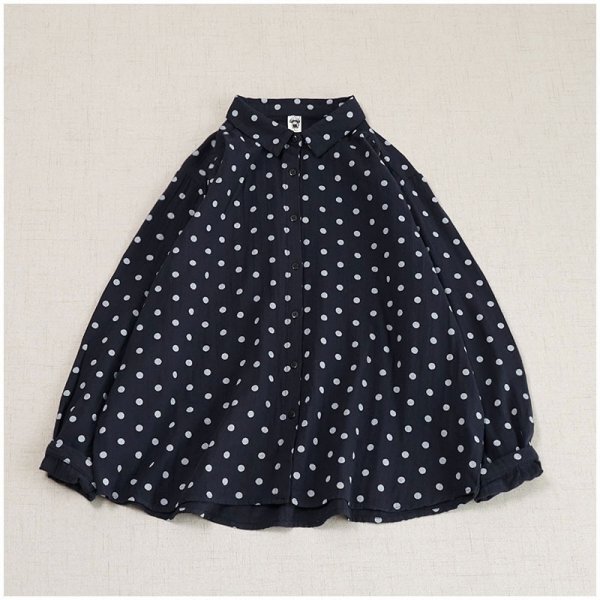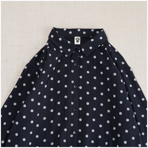 yh ダブルガーゼ ドット柄 ワイシャツ チュニック 大人可愛 オシャレ フリーサイズ ナチュラル 綿100% コットン ネイビー