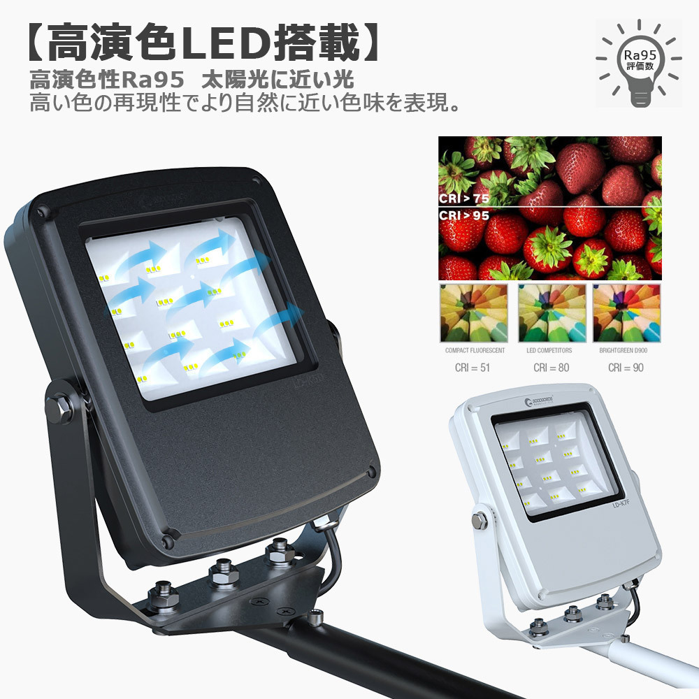 GOODGOODS アーム投光器 50W 投光器 高演色性 Ra95 看板照明 屋外 防水 黒 看板灯 店舗照明 看板照明 LD-K5D