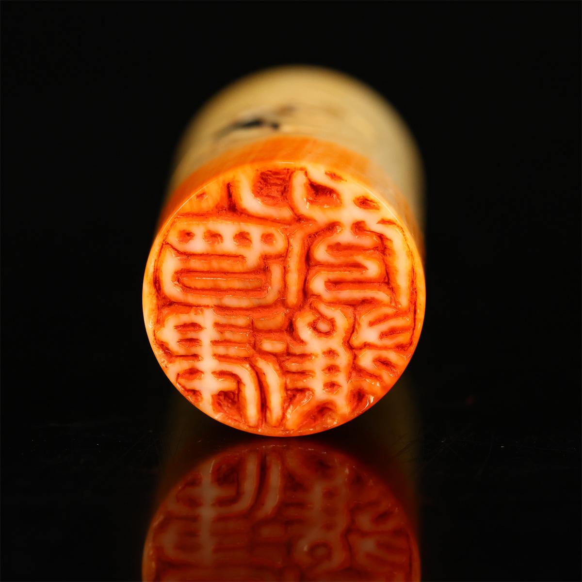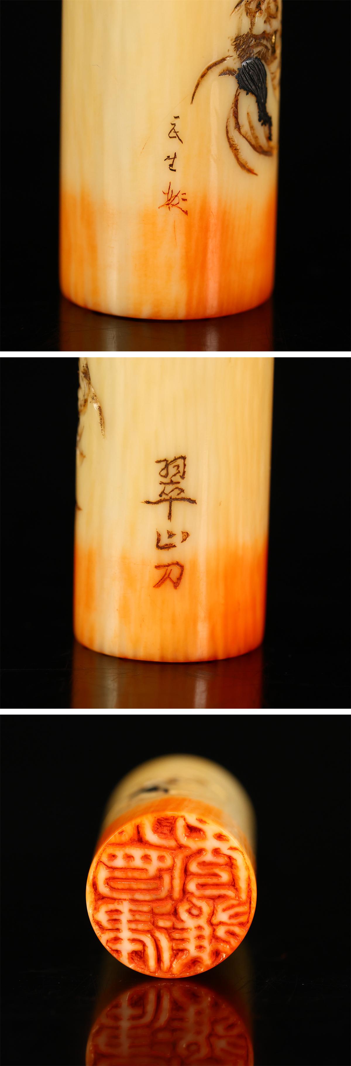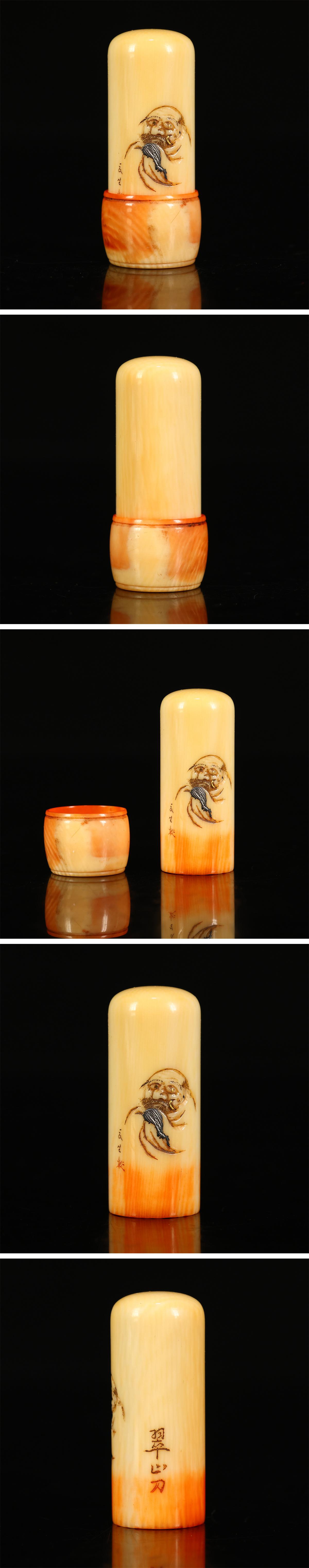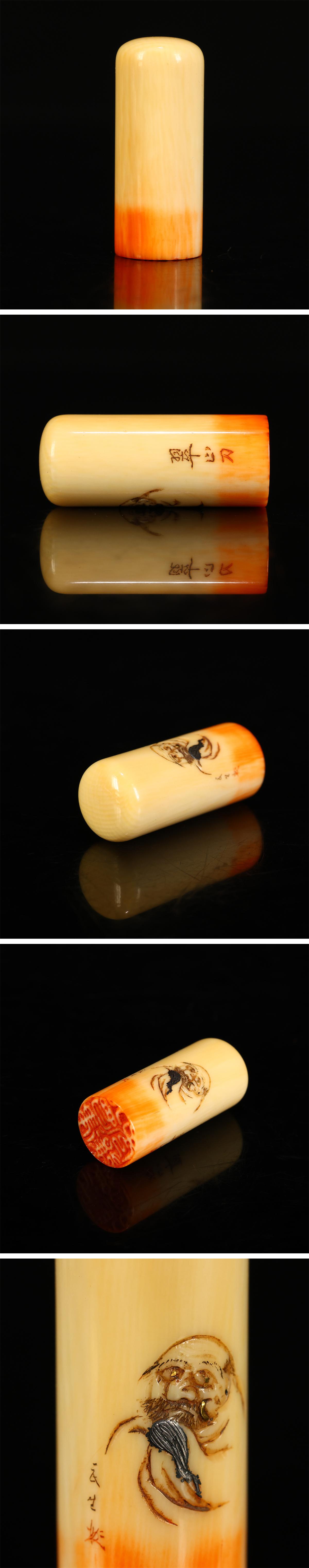 久1307 時代 民生作 翆山刻 達磨金銀象嵌紋 印材 印章 高3.5㎝ 径1.5㎝ 重13.2g