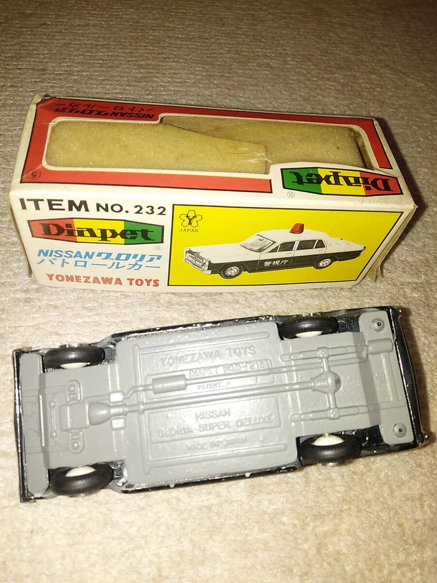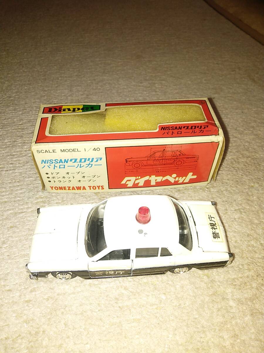 ダイヤペット、グロリアパトカーです。工場出荷時の塗装ハゲ、ムラあります。約25年前巣鴨ガリバーさんで購入しました。自由の断捨離です。