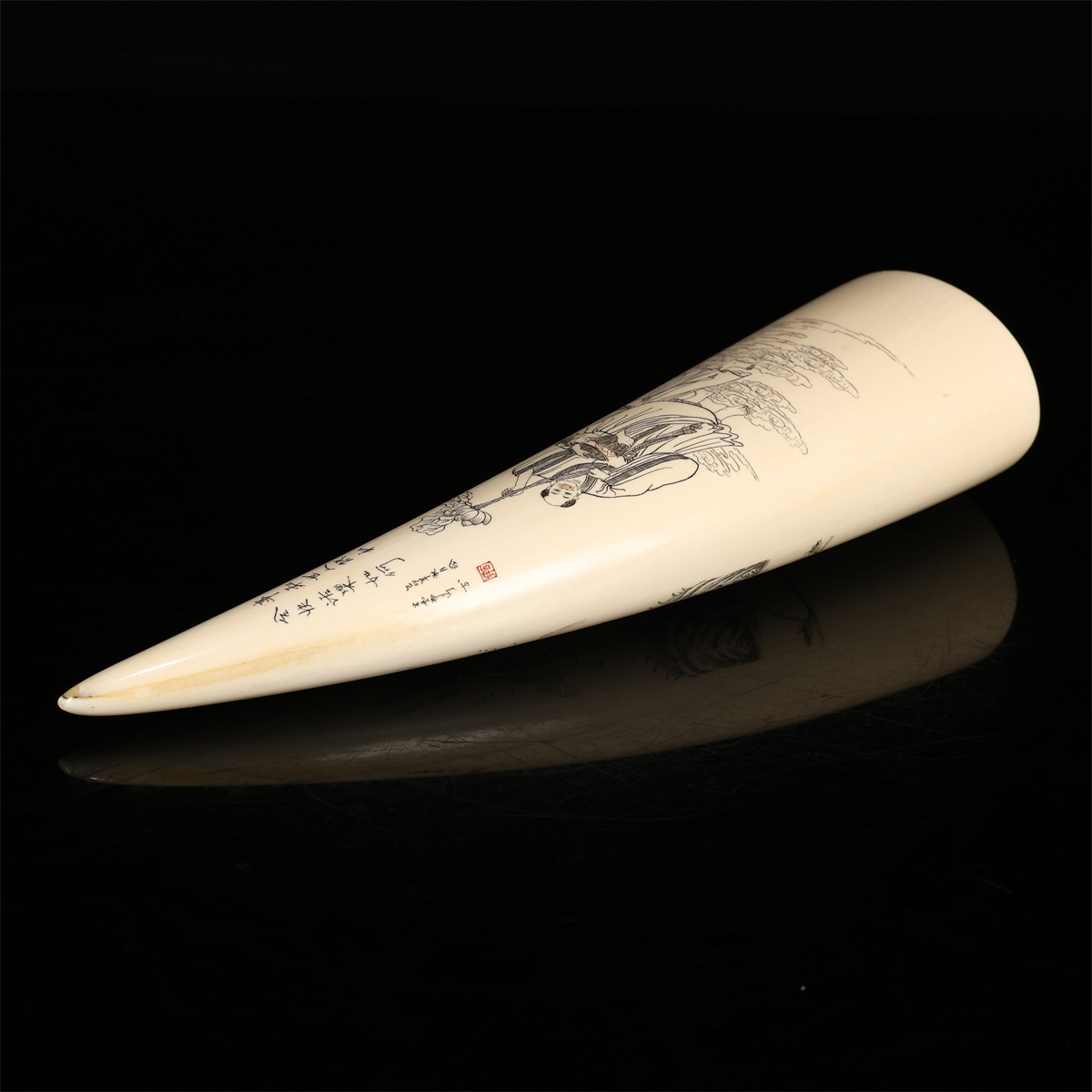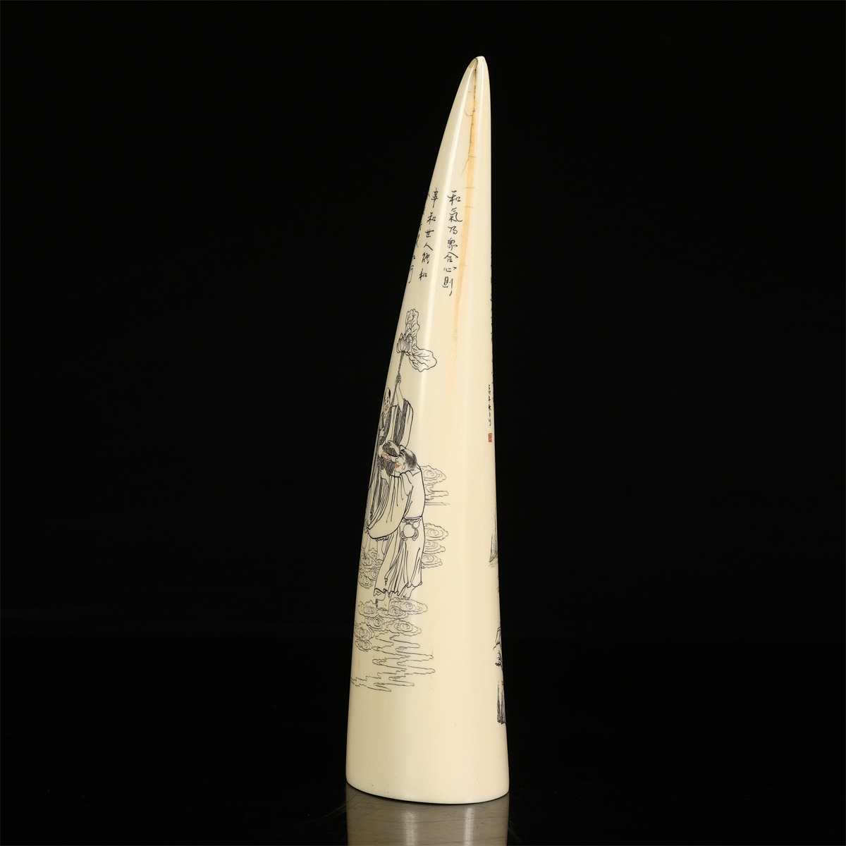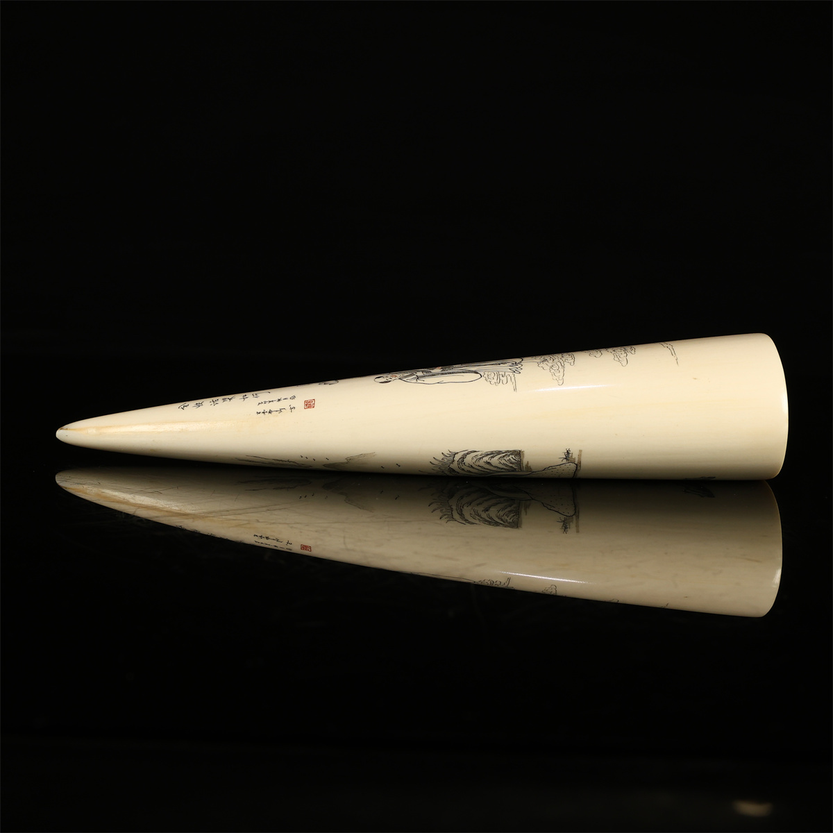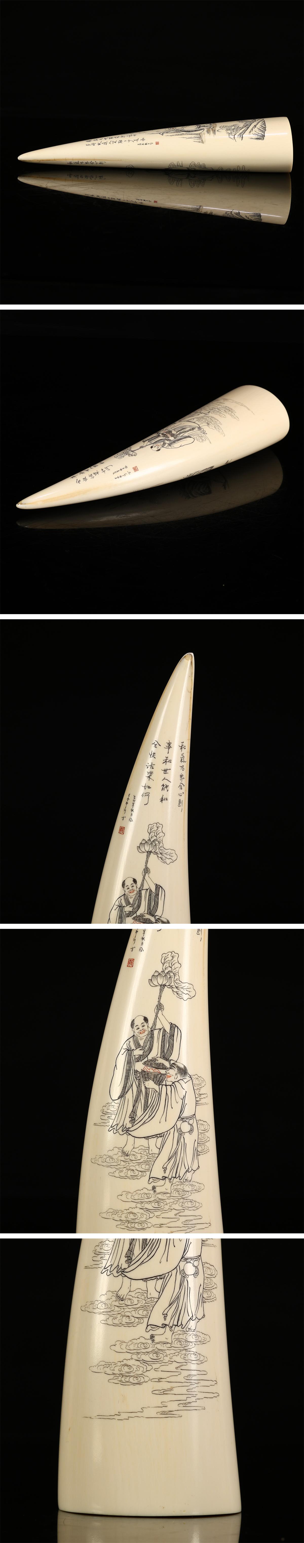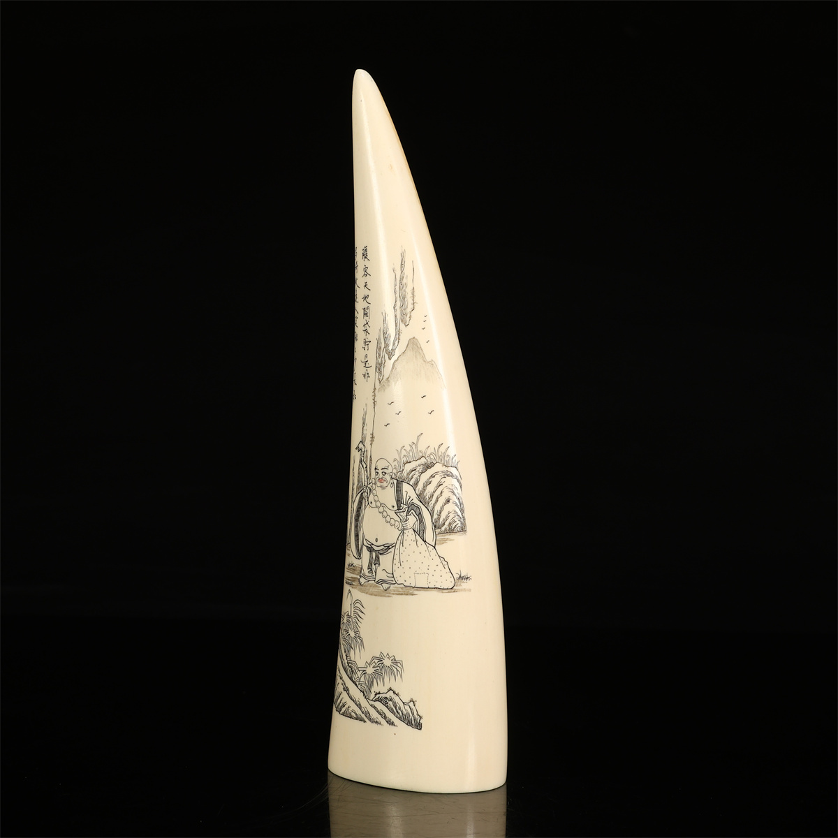 久1237 唐物 東洋彫刻 山水漢詩布袋彫刻 置物 高22.3㎝ 重421g