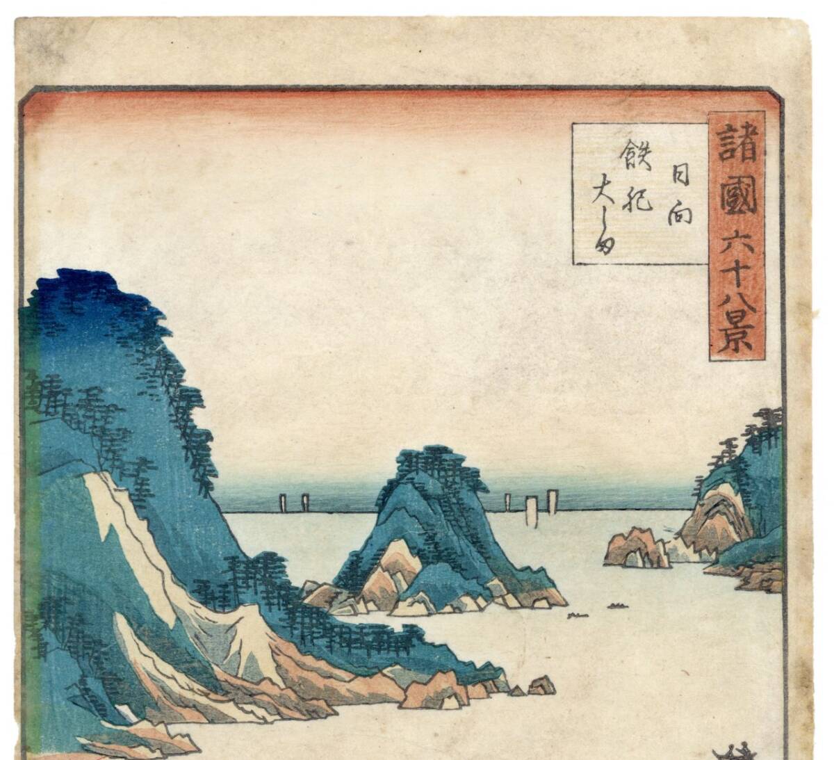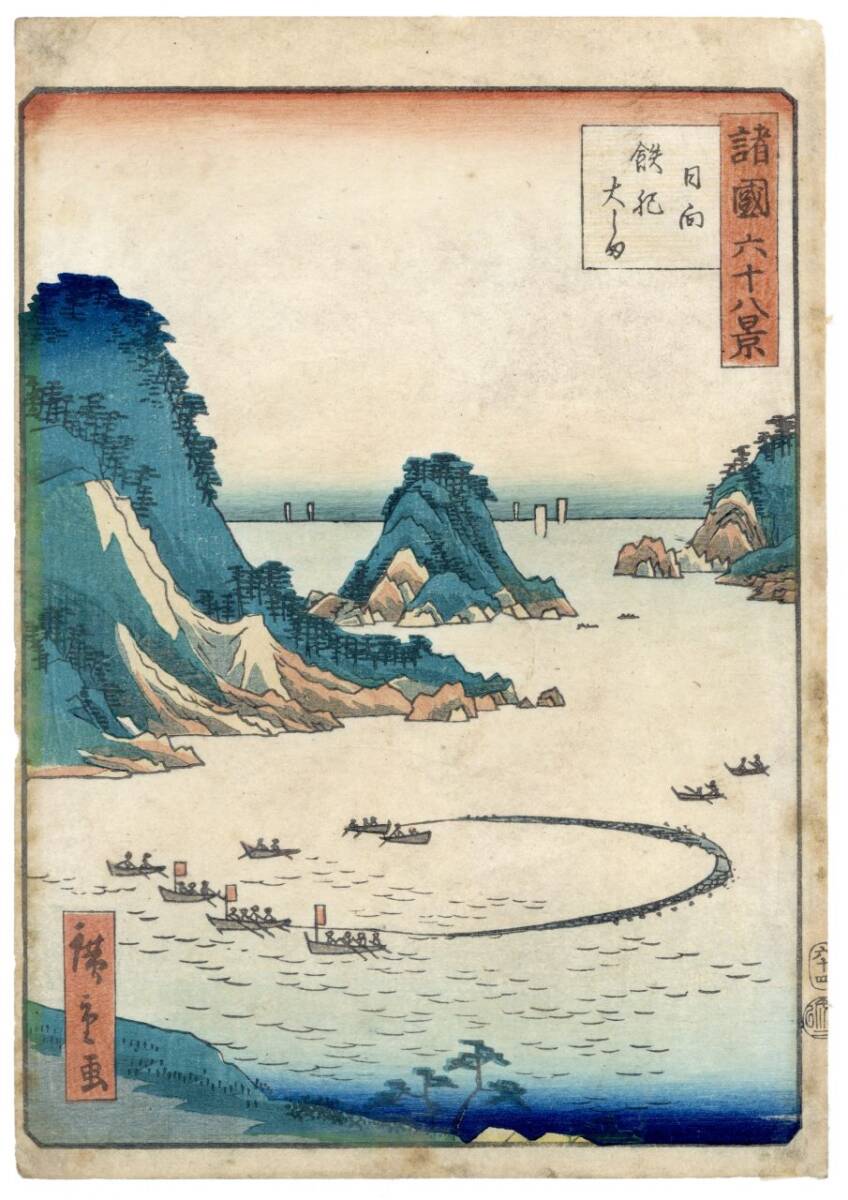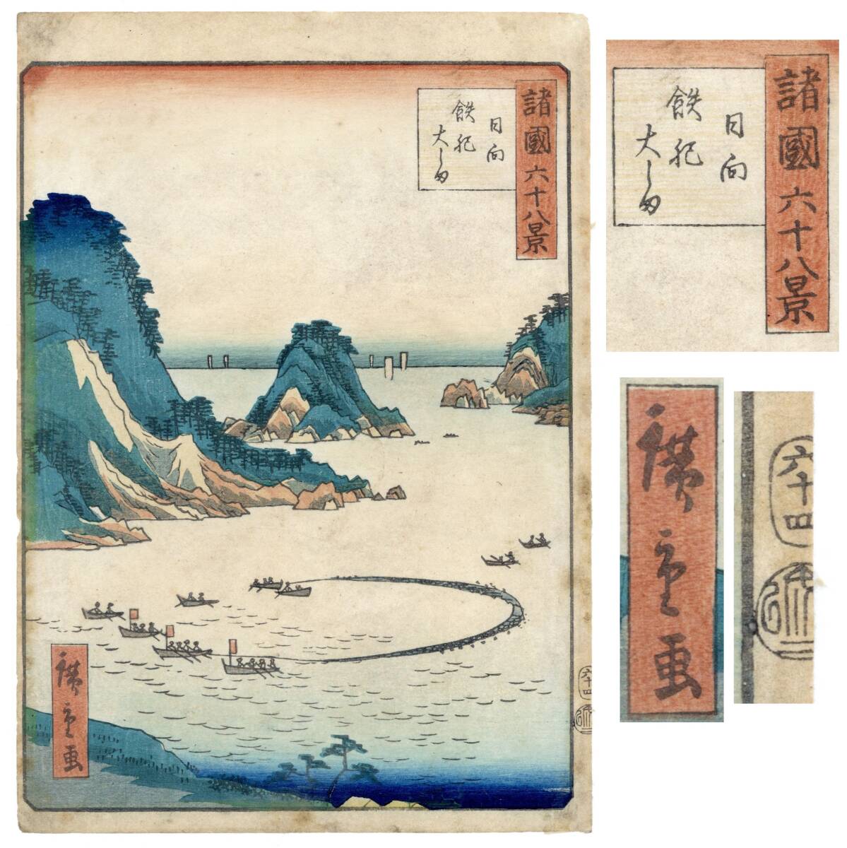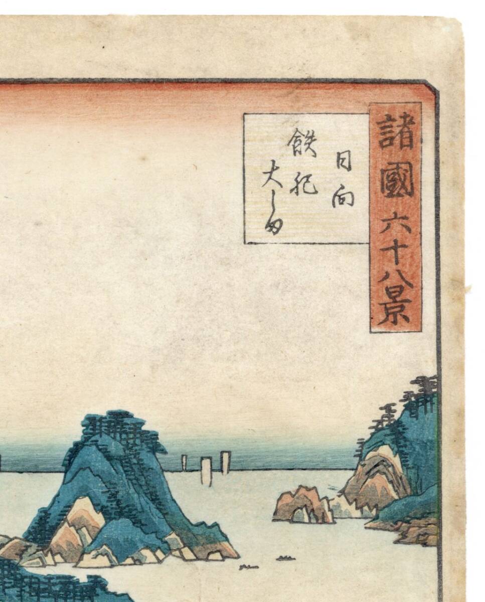 「真作」 諸国六十八景 日向鉄紀大島 2代目歌川広重 1862年(文久2年) 中版絵 浮世絵 錦絵 木版画 北斎 英泉 豊国 国芳 月岡芳年 豊原国周