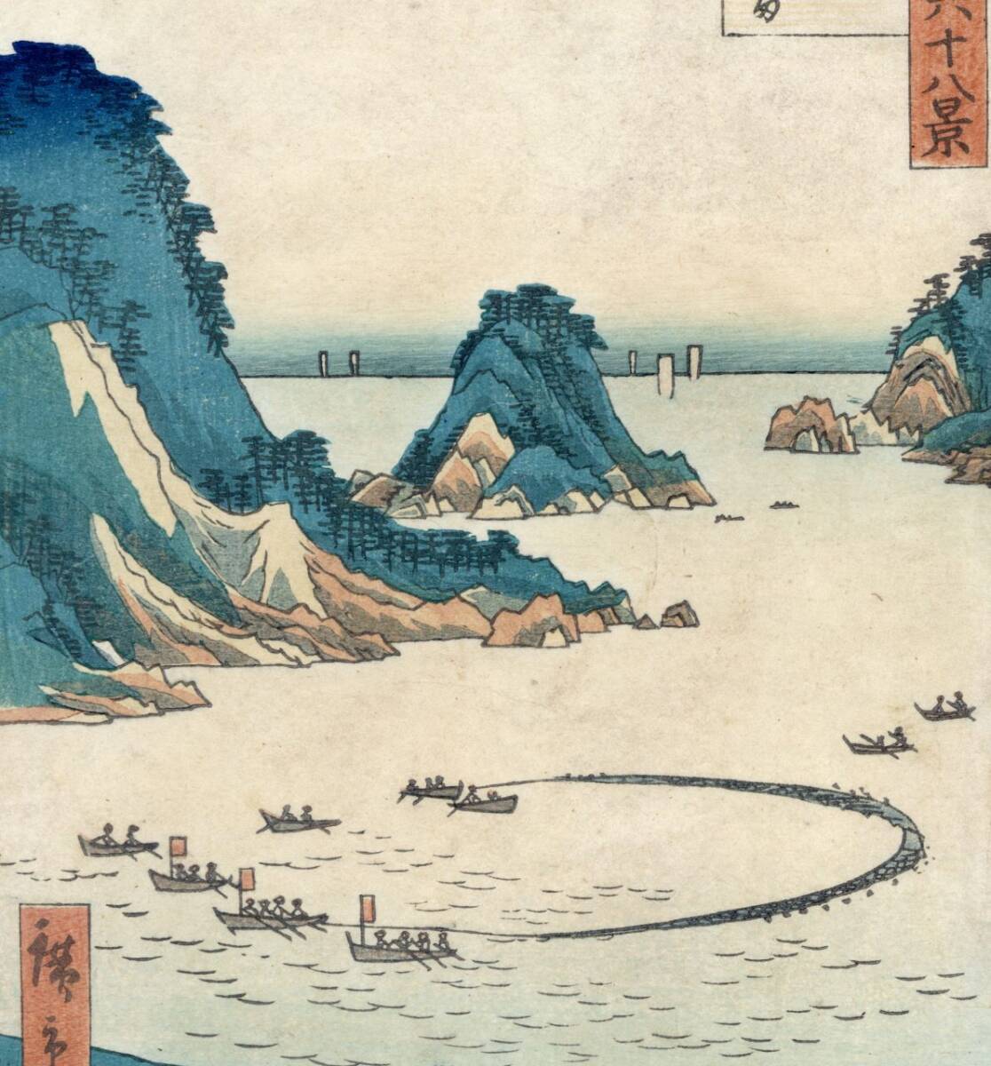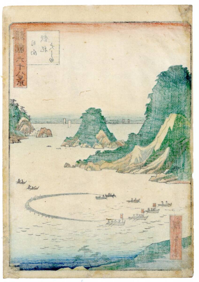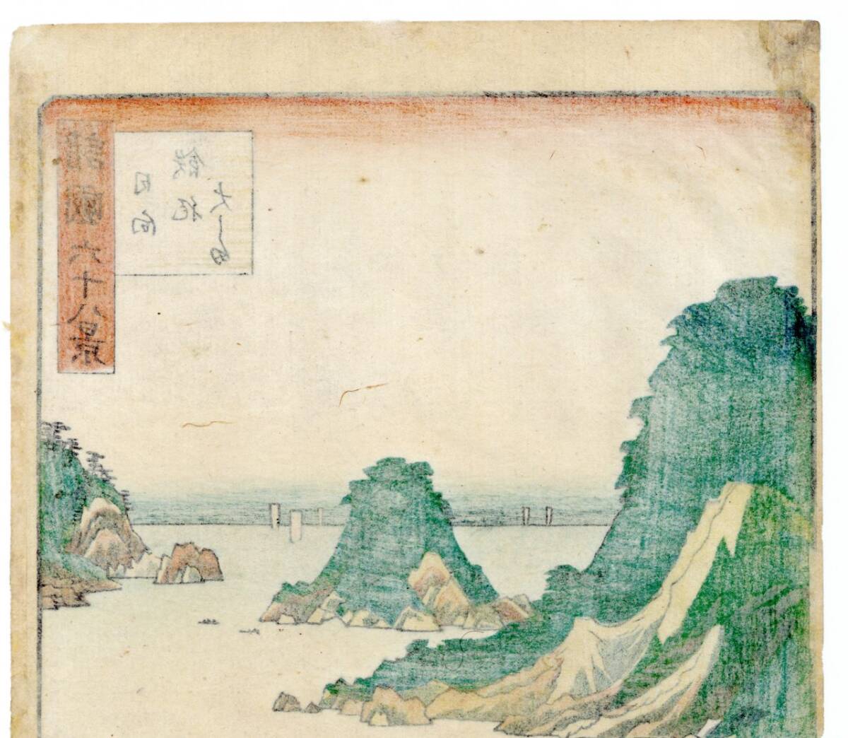 「真作」 諸国六十八景 日向鉄紀大島 2代目歌川広重 1862年(文久2年) 中版絵 浮世絵 錦絵 木版画 北斎 英泉 豊国 国芳 月岡芳年 豊原国周