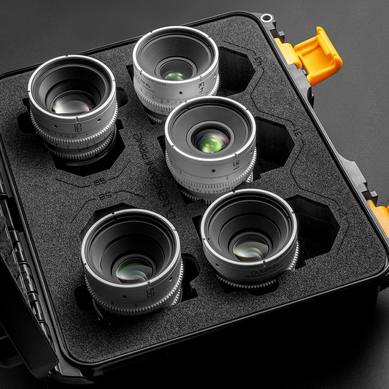 DULENS(デュレンズ)APO Mini Prime の焦点距離 21mm、31mm、43mm、58mm、85mm の5本セットです。IP67等級の防水・防塵性能を備えた耐衝撃ハードケースが付属し、レンズを安全に保護しながら持ち運ぶことができます。 オールドレンズの特徴を再現 レンズに施されたV+コーティングが、肌の色を滑らかに映し、落ち着いた柔らかな雰囲気と質感を映像に与えます。また、この加工により特殊な虹色のフレア(デュレンズ・レインボーフレア)を発生させることができ、映像に独特の味わいや芸術的な効果を与えます。このフレアは、絞りを1~2段絞ることで抑えることもできます。 優れた描写性能 APO(アポクロマート)設計により、絞り開放時も色収差を抑え自然な描写を実現。被写体の輪郭をシャープに捉えながら、柔らかなボケ味と豊かな表現力を提供します。また、映像の色調をシリーズで統一している為、レンズを交換した後の設定の調整や、ポストプロダクションの時間を短縮します。 多くのアクセサリーを使用可能 フィルター径72mm・先端の外径80mmで、市販の多くのフィルターやマットボックスを使用することができます。持ち運びやすく扱いやすい約500~620gのコンパクト設計で、ドローンやスタビライザーなどの撮影機材との併用も容易です。 鏡筒の仕様を共通化 ピントリングと絞りリングの位置・大きさなど、鏡筒の仕様をシリーズ共通にすることで、レンズ交換時のレンズアクセサリーとカメラスタビライザーの大幅な調整が不要になりました。