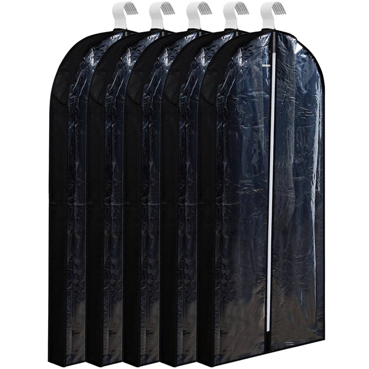 VECELO 衣類カバー 防塵カバー スーツカバー ハンガー 5枚組 マチ付き 湿気取り 防汚 吊り下げたまま使えるゆったりシワになりにくいマチ