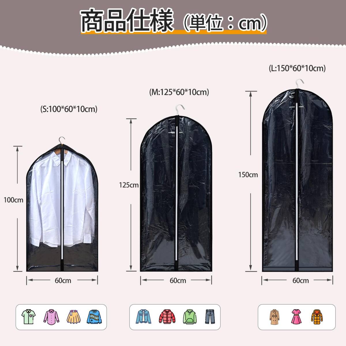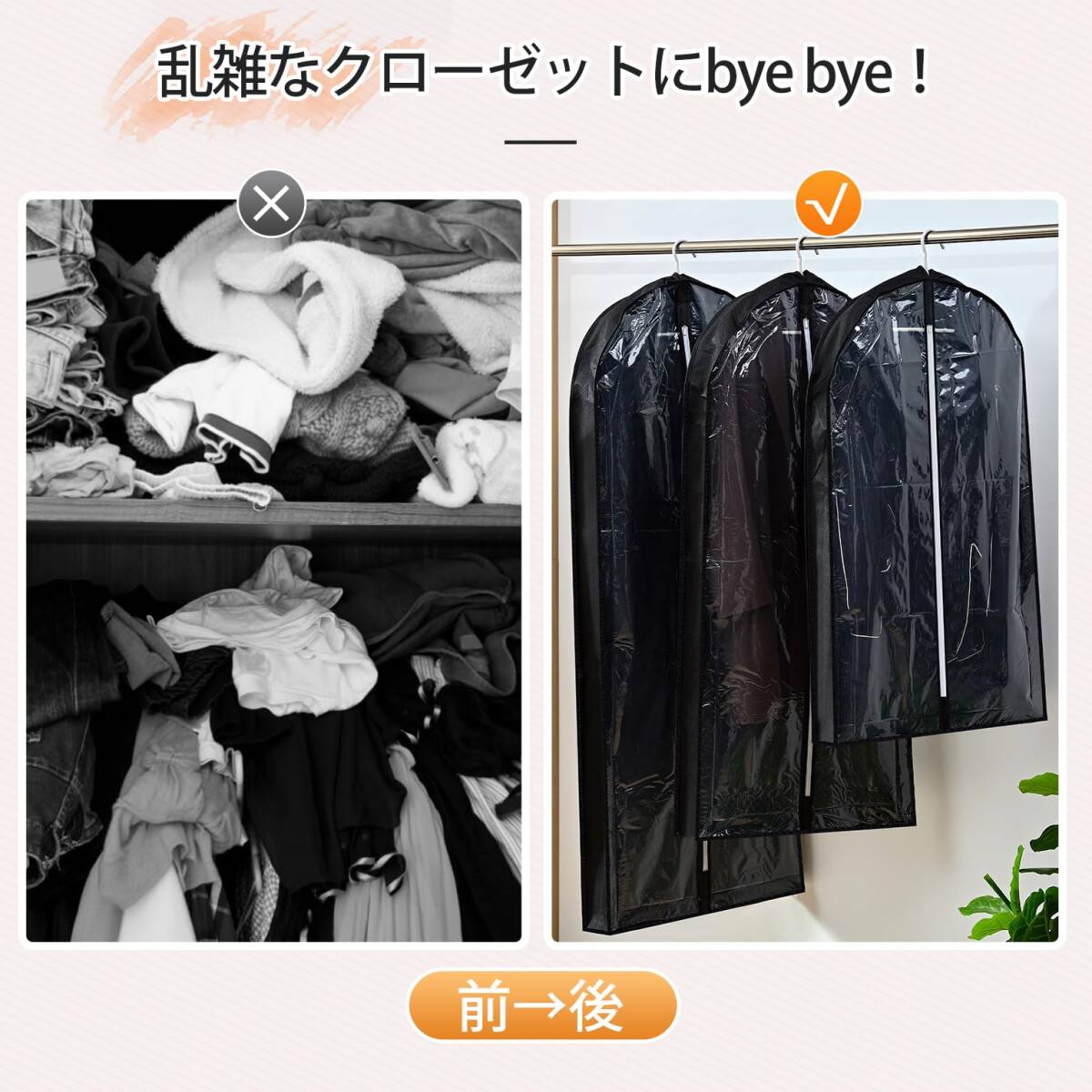 ・【可視窓付き】前面は完全に透明で、防塵カバーを開けずに探したい衣類を確認できます。【マチ付きシワになりにくい】マチを設けた立体的なデザインで、衣類を入れても圧迫されずシワになりにくいです。