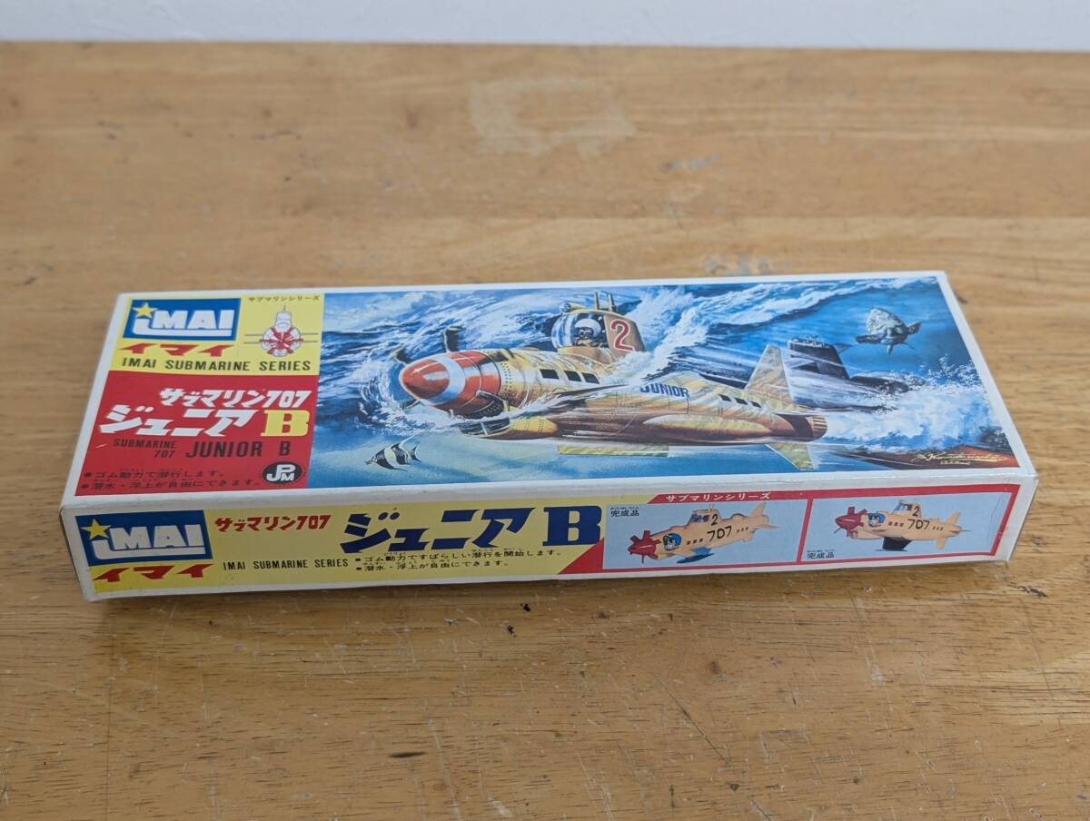 旧イマイ(約15cm)サブマリン707 ジュニアB ゴム動力です。箱は汚れ、へこみ、キズがあります。袋部品未開封です。イマイの1960年代の人気アニメのキットです。欠品があってもご容赦下さい。興味ある方いかがですか。
