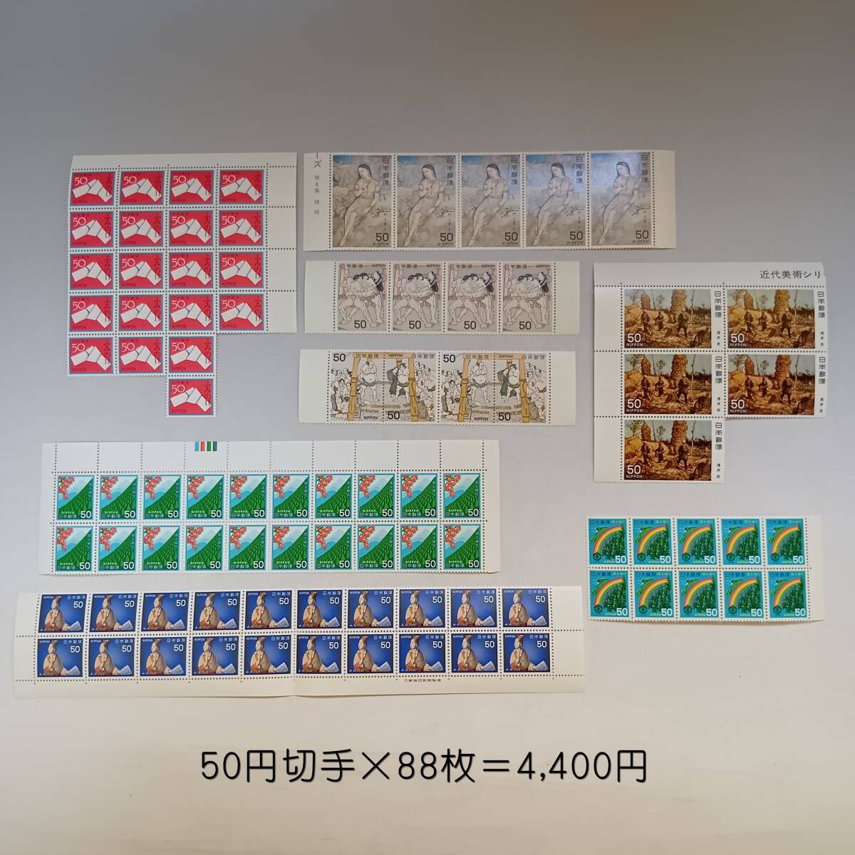 | ◆ご入札、ご落札前に必ず下記の注意事項をお読みください◆ (ご落札後は注意事項に同意頂いたものとさせて頂きます。) ●内容 各切手の枚数は写真にてご確認下さい。 ●商品状態 大きく目立つダメージは見当たりませんが、少々古いお品となります。 全体に経年変化による変色が若干みられ、保管時による汚れがみられる場合があります。 その旨ご理解頂ける方のご落札をお願い致します。 ※不明な点などは、必ずご落札前にご質問下さい。 ご落札後の商品状態に関するご質問や、それによるキャンセルはご遠慮下さい。 ※お品の性質上、原則ノークレーム・ノーリターンでお願い致します。 ※発送方法に関して、下記にも記載させて頂いております発送方法(匿名発送)以外はお受けいたしません。 ※匿名発送につき、領収書は発行致しません。 必要な場合は、ヤフーかんたん決済のご利用明細書を印刷してご対応をお願いします。 注意事項+++ ●ご落札後、5日以内にご連絡、ご入金頂けない場合は大変残念ですが、キャンセルとさせて頂きます。(キャンセル前のご連絡は致しませんのでお気を付け下さい。) ●ご落札者様のご依頼によるキャンセルについては、「ご落札者様の都合」によるキャンセルとさせて頂きます。 ご入札後、「入札取消」のご依頼を頂いても、終了時間前に対応出来ないこともあり、その場合も「ご落札者様都合」のキャンセルとさせて頂きますので、慎重なご入札をお願い致します。(落札された時点でご購入頂けなくとも、ヤフーの「落札システム使用料(落札価格の約10%)」がかかる為、何卒ご了承下さいませ。) ●発送は基本、送料込みの匿名発送とさせて頂いております。その為、ご落札後に宛先変更(取引ナビに表示されているお届け先情報)は変更出来ません。 ※必ずご落札前に、ヤフーにご登録のお届け先情報を変更された上でご入札下さい。 (もしどうしても変更が必要な場合は、一旦「落札者様都合のキャンセル」としたうえで、再度のご落札をお願い致します。 また、営業所留めやコンビニ受取りをご希望の場合、ご落札者様のほうでお手続きが必要となります。下記のヤフオク!ヘルプのサイトでご確認下さい。 →https://support.yahoo-net.jp/PccAuctions/s/article/H000013307 ●基本的にお取引後には「評価」を入れさせて頂きます。 評価をご希望でない方は事前に取引メッセージよりお知らせ下さい。 ●お値引きについては対応しておりませんので、値引き交渉はご遠慮下さい。 (質問欄よりのお値引き交渉に対しては回答を控えさせて頂きます。) ●出品させて頂いているお品は、全て自宅保管のお品となります。 美品や完品をお求めの方、細かいところが気になる方はご入札をお控え下さい。 ●発送時の梱包材はリサイクル品を使用させて頂くこともあり、出品価格を安価にする為、簡易包装で発送させて頂きます。ご理解頂けますと幸いです。 ●配送中のトラブル(破損等)があった場合は、お受取りの連絡をせず、まずはヤフオク!にご連絡をお願い致します。(補償については下記のサイトでご確認下さい。) →https://support.yahoo-net.jp/PccAuctions/s/article/H000005188 | |||