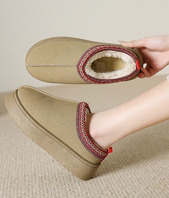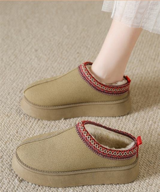 ムートンブーツ レディース ボアシューズ ブラック カーキ 暖かい ファーシューズ フラット カジュアル 秋冬 防寒 裏起毛 カーキ 25.0cm
