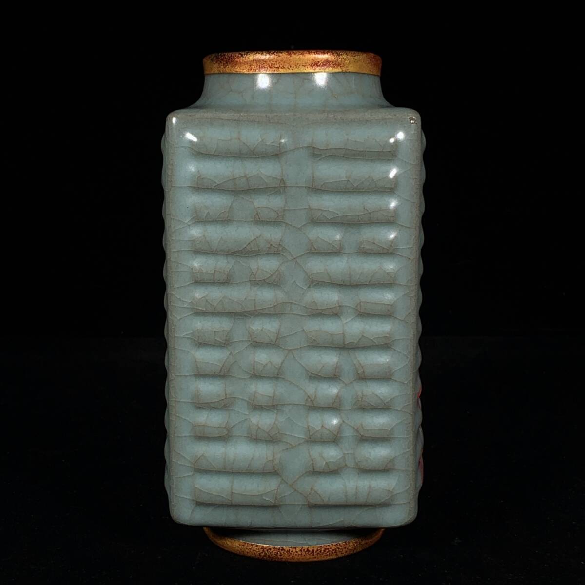 【超珍館蔵】宋 古陶瓷品 官窯 包口 銘文 八卦紋 琮式瓶 陶藝 古賞物 古董品 古美術品 時代物 旧家蔵出 稀少珍蔵品