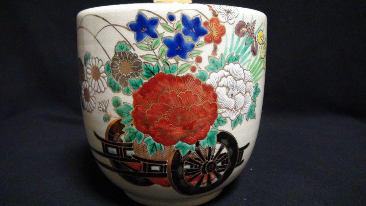 京焼 平安 橋本紫雲作 色絵花車水指 水指 共箱 未使用品 茶道具