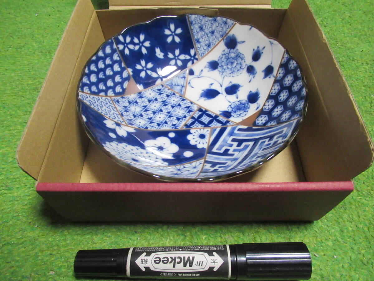藍友禅 中皿 16cm 菊形 和モダン 和カフェ