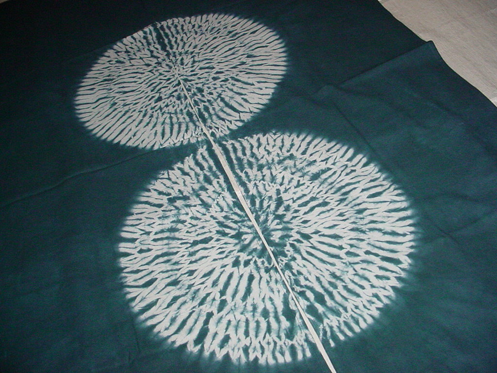 【 のれん 「 二連 円  」藍染のれん 絞り風合い染加工 暖簾 天然草木染 綿100% インテリア用品 海外土産 新品 】です。