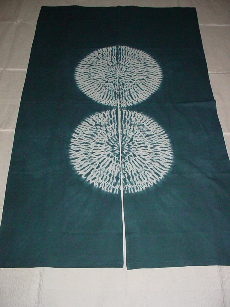 【 のれん 「 二連 円 」藍染のれん 絞り風合い染加工 暖簾 天然草木染 綿100% インテリア用品 海外土産 新品 】