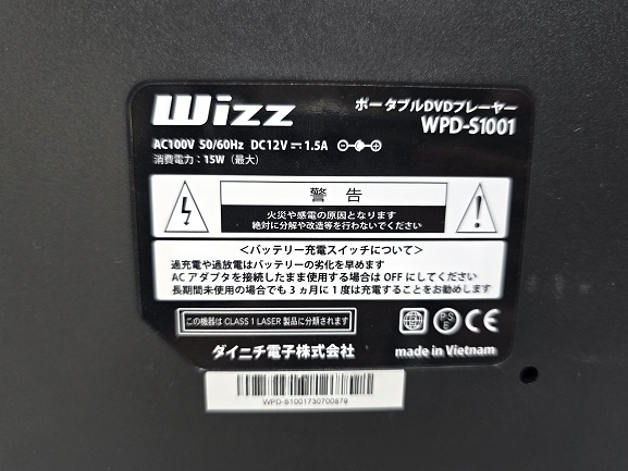 【中古品】 ダイニチ電子 Wizz 10.1インチ ポータブルDVDプレーヤー WPD-S1001 ○YR-19068○ の出品です。